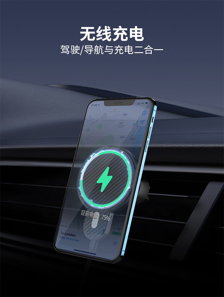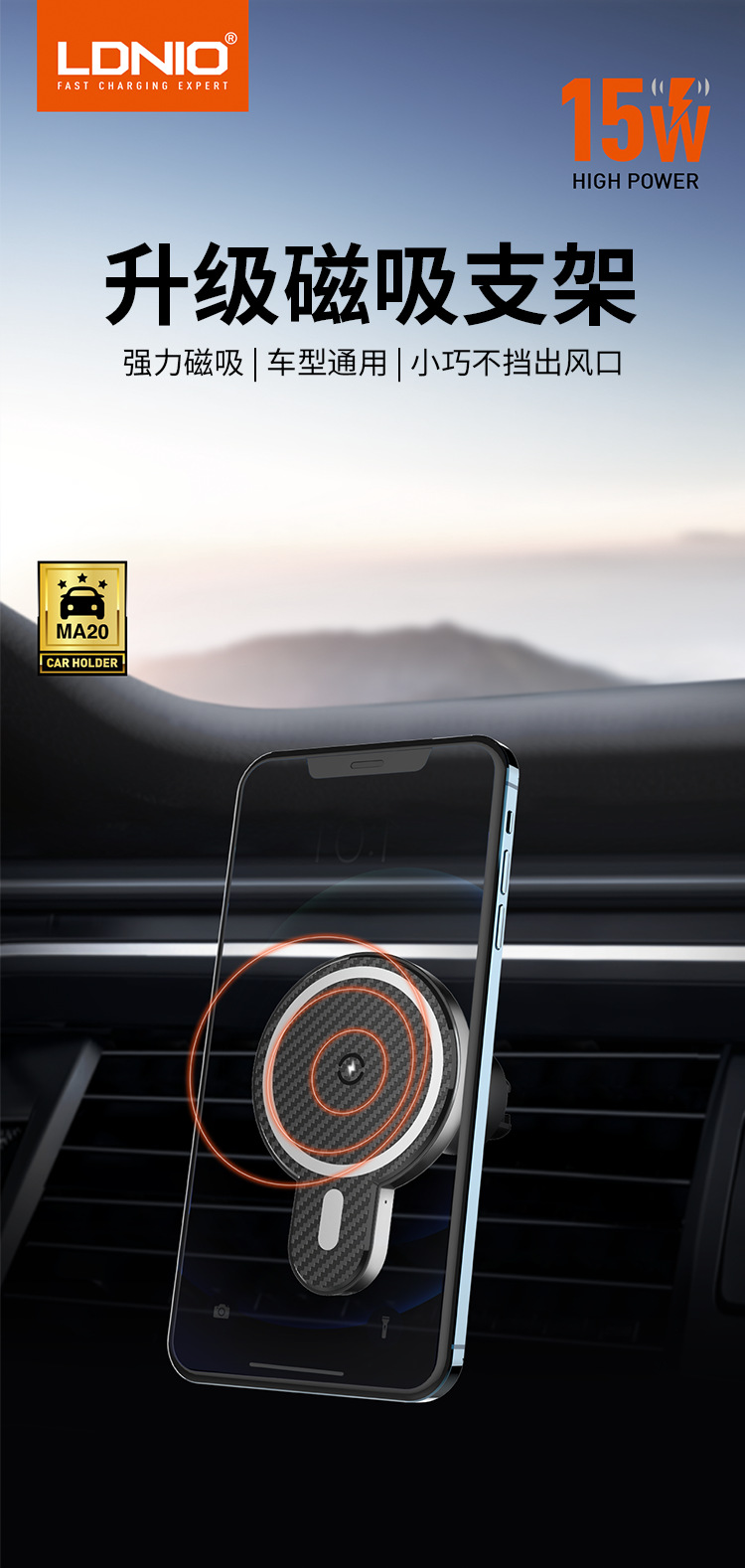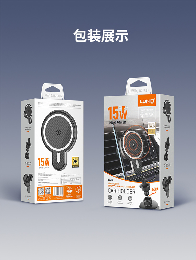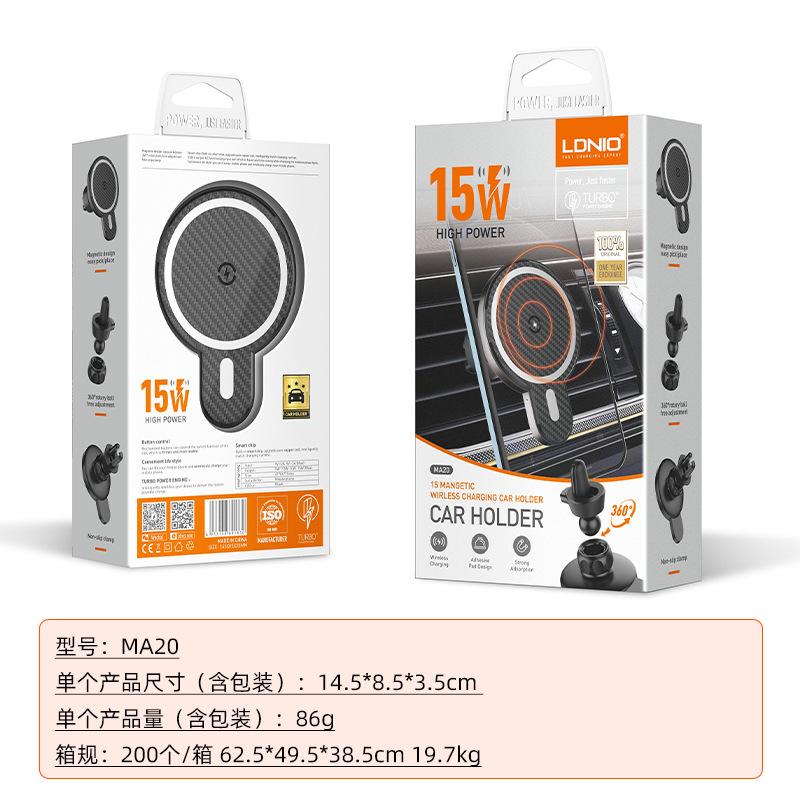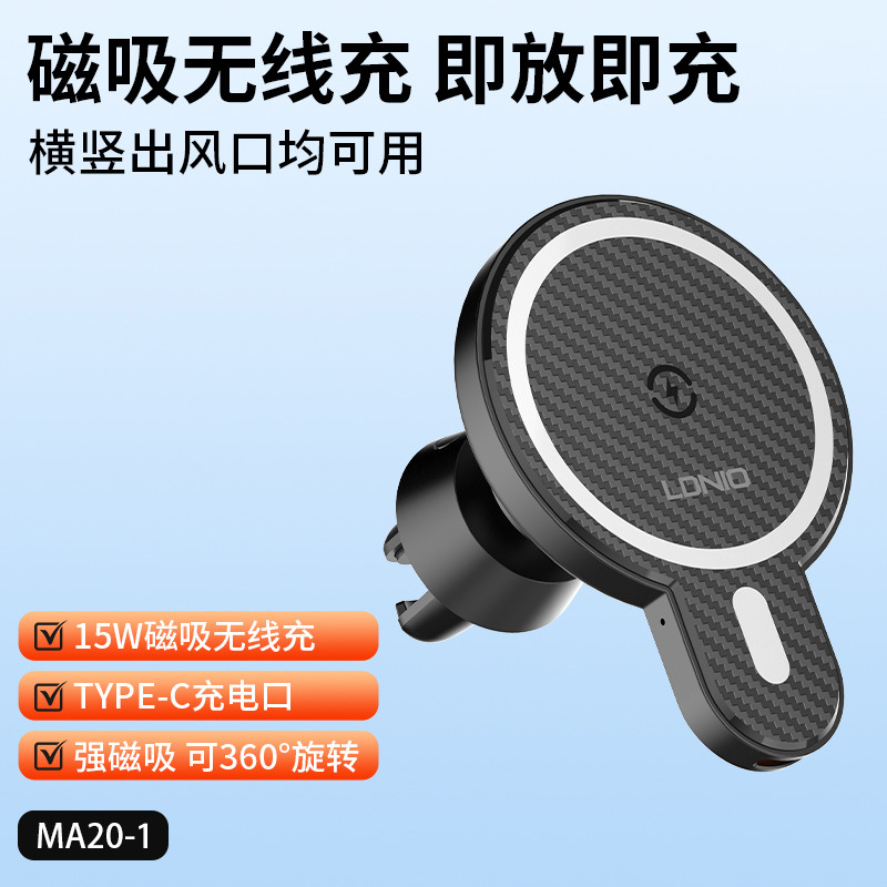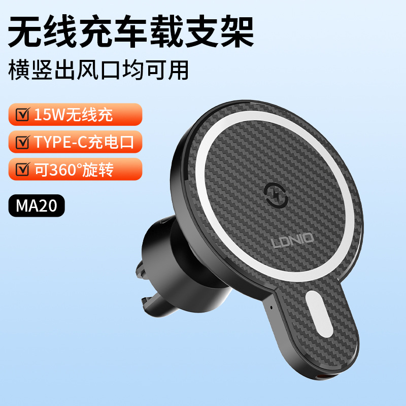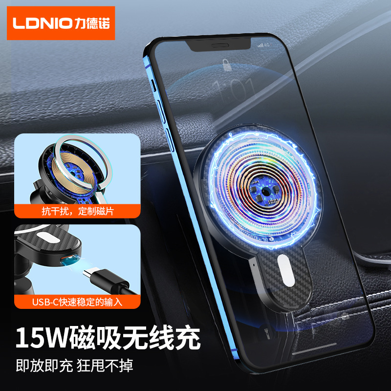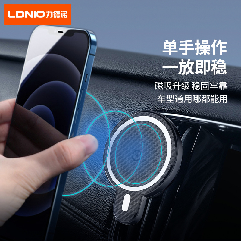Магнитный автомобильный держатель для телефона LDNIO подходит для беспроводной зарядки Apple 15W, универсальный.