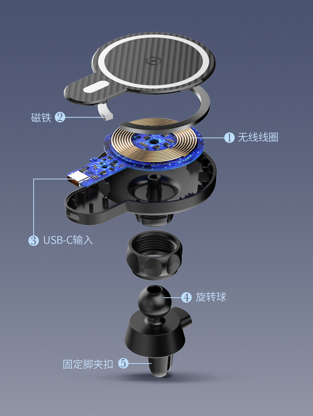 MA20-1 Беспроводное автомобильное крепление + магнитное кольцо; Беспроводное автомобильное крепление MA20 — без магнитного кольца