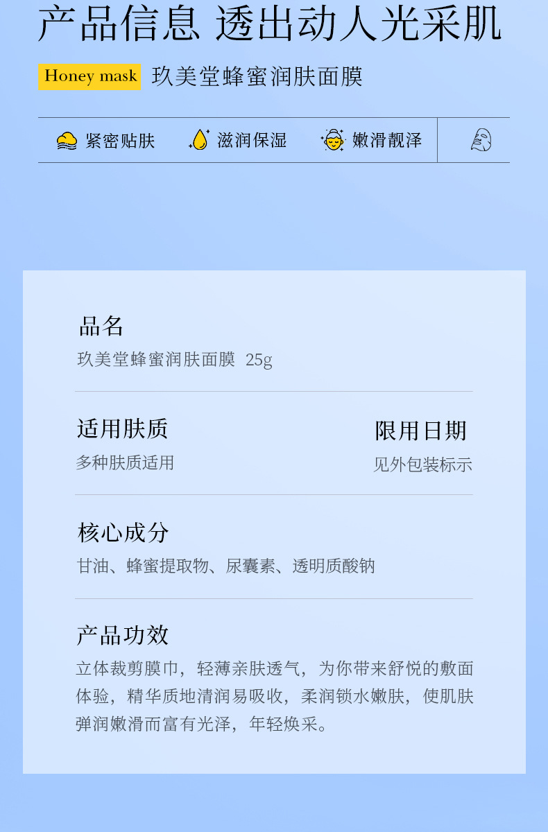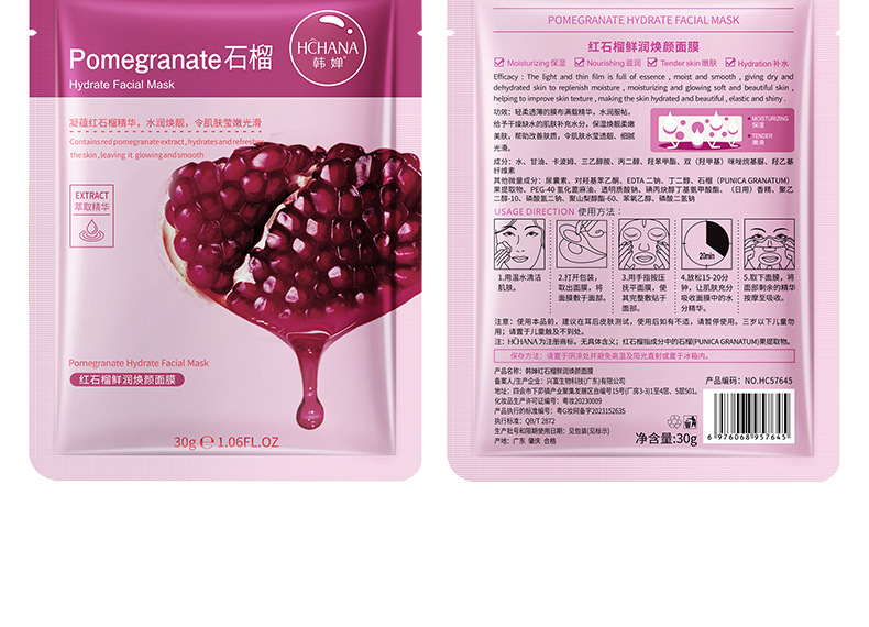 Маска с алоэ вера Han Chan / 30 г (от 20 000 штук, $0.17 за штуку); Маска для лица с медом Han Chan / 30 г (от 20 000 штук, $0.17 за штуку); Маска для лица с черникой Han Chan / 30 г (от 20 000 штук, $0.17 за штуку); Маска для лица Han Chan с оливками / 30 г (20 000+ штук, $0.17 за штуку); Маска для лица Han Chan с красным гранатом, 30 г (20 000+ штук, 0,17 за штуку); Маска для лица с огурцом Han Chan: увлажняющая и упругая (новинка), 30 г (0,17 за штуку при заказе от 20 000 единиц и более); Маска «Кровавый апельсин»/25г; Увлажняющая и разглаживающая молочная маска (новинка) 25г; Увлажняющая маска/25г; Увлажняющая маска с гиалуроновой кислотой/25г (новинка); Увлажняющая маска с гиалуроновой кислотой (новая)/25г; Увлажняющая маска с гиалуроновой кислотой (новинка) 25г.; Увлажняющая маска с гиалуроновой кислотой листовая 25г; Маска с алоэ и ниацинамидом/25г; Маска из огурца и центеллы азиатской/25 г (новинка); Олигопептидная маска с гранатом/25г; Маска с витамином С/25г (новинка); Маска с фуллереном и медом/25г; Персиковая шестипептидная маска/25г; Маска из бифидных дрожжей авокадо/25г; Коллагеновая маска с черникой/25г; Маска с гиалуроновой кислотой из зеленого чая/25г; Маска с арбутином из морских водорослей/25г; Золотая маска с гиалуроновой кислотой (новинка) 25г; Морковная маска 25г; Медовая маска 25г; Вишневая маска 25г; Маска алоэ вера 25г; Маска из папайи 25г; Маска из огурца 25г; Маска из авокадо 25г; Маска для лица с черникой, 25 г; Глубоководная увлажняющая маска (новинка) 25 г; Увлажняющая и омолаживающая маска с черным трюфелем (новинка) 25 г; Двойная антивозрастная маска с астаксантином 25 мл.; Рекомбинантная коллагеновая маска III типа, 25 мл.; Коллагеновая маска для лица Lady/28 г; Полипептидная коллагеновая маска для лица/28 г; Позолоченная коллагеновая маска для лица / 28 г; Молочная маска 25г; Маска с витамином Пантенолом и гиалуроновой кислотой, 25 г