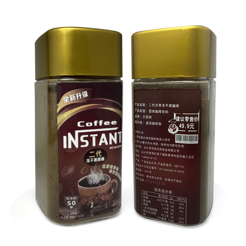 Растворимый черный кофе 100г в бутылке, кофе из мелких зерен из Юньнани, горький, без сахарозы, в итальянском стиле, прямые поставки с завода, кофейный порошок с низким содержанием сахара