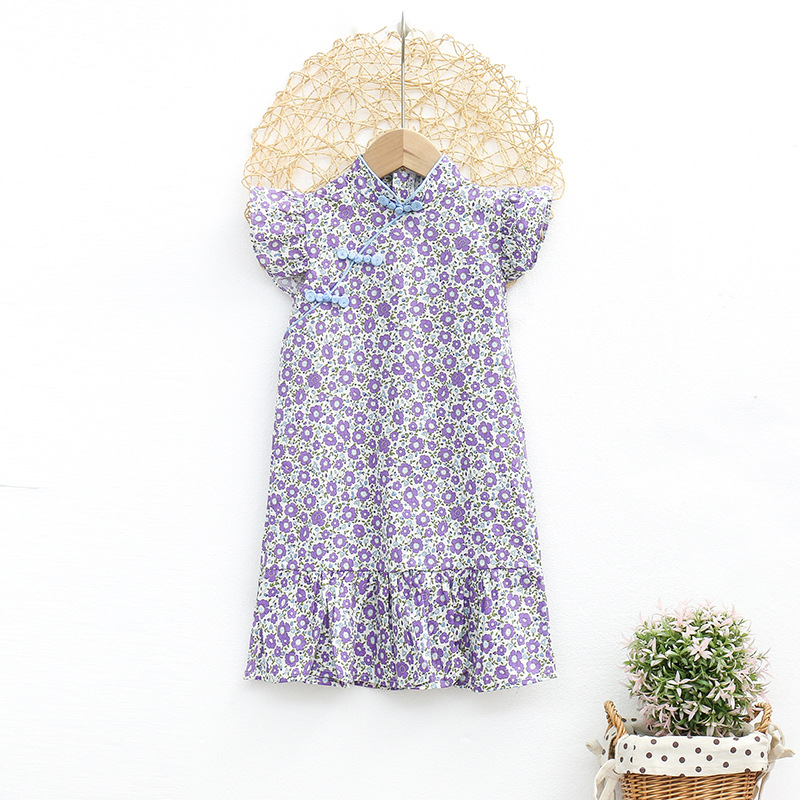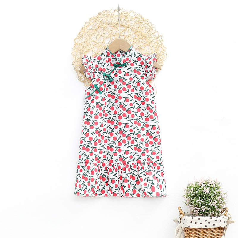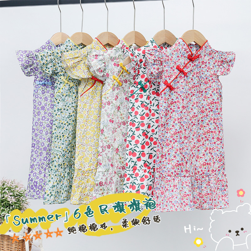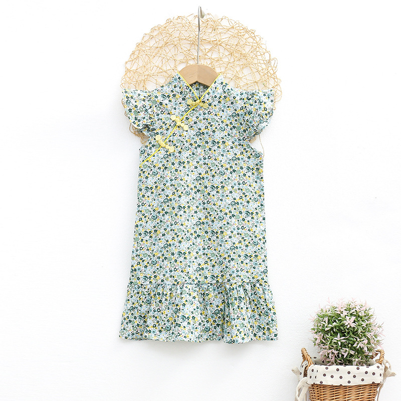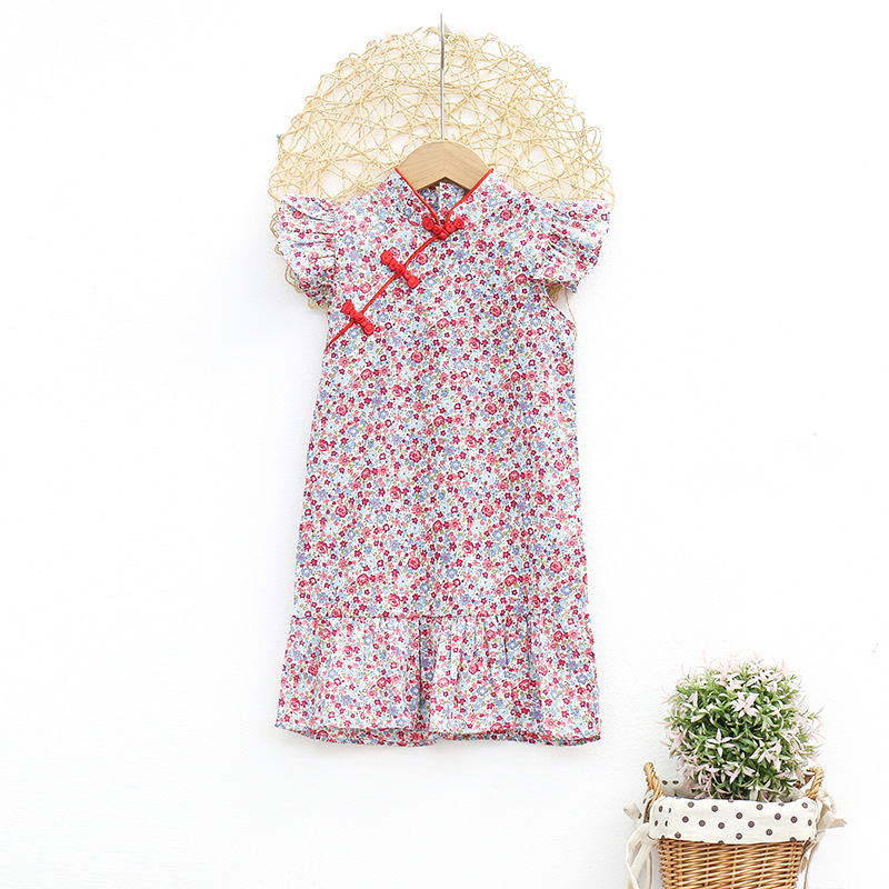 Детское платье для девочек, лето 2024, новая модель, модное китайское платье-ципао с цветочным принтом, платье принцессы для малышей