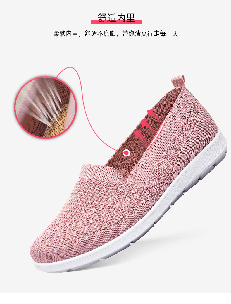 Женская повседневная обувь, дышащие туфли на плоской подошве из трикотажа, обувь для мам среднего и старшего возраста, старинные пекинские тканевые туфли, экспортная женская обувь, туфли на плоской подошве.