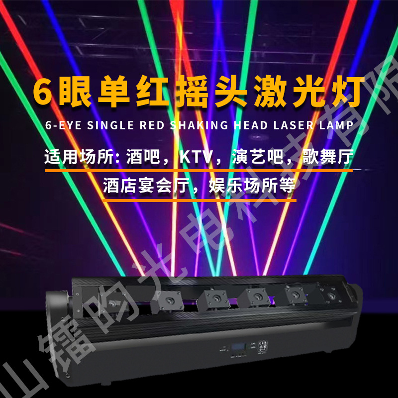 Бар шесть глаз 500 одиночный красный лазерный свет красный Зеленый Синий качели Самостоятельная ходьба полноцветный лазер с голосовым управлением 6 глаз качающаяся голова лазерный свет