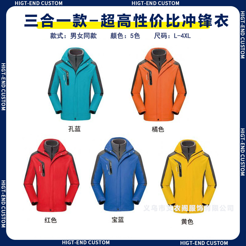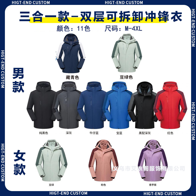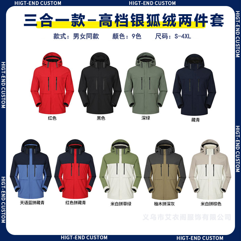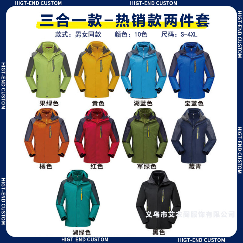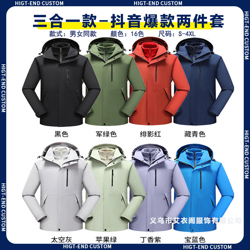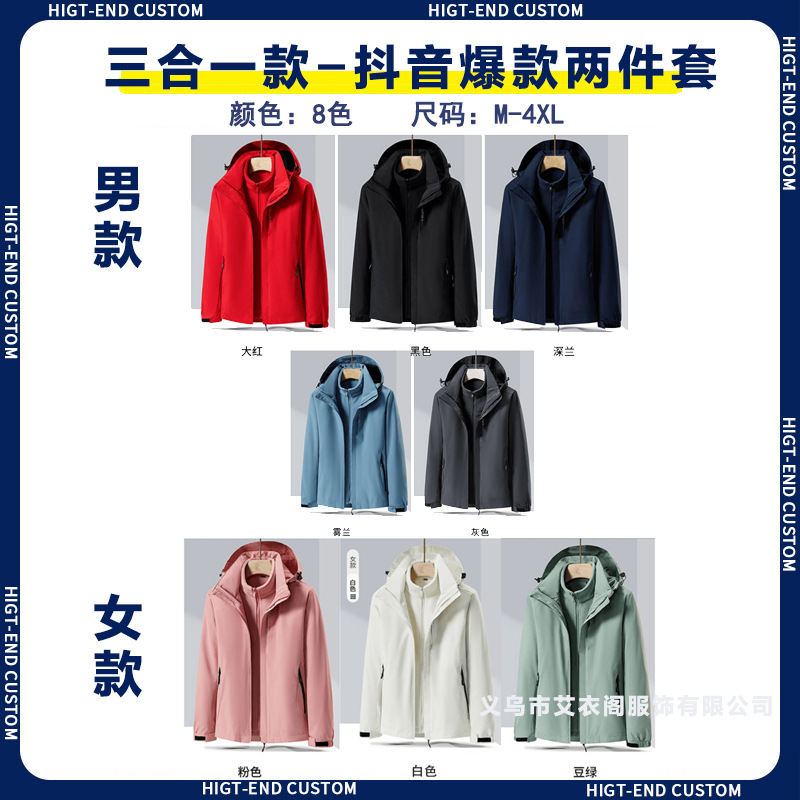Наружная куртка на заказ рабочая одежда с печатным логотипом ветрозащитный водонепроницаемый три в одном съемный сюртук плюс флисовая куртка