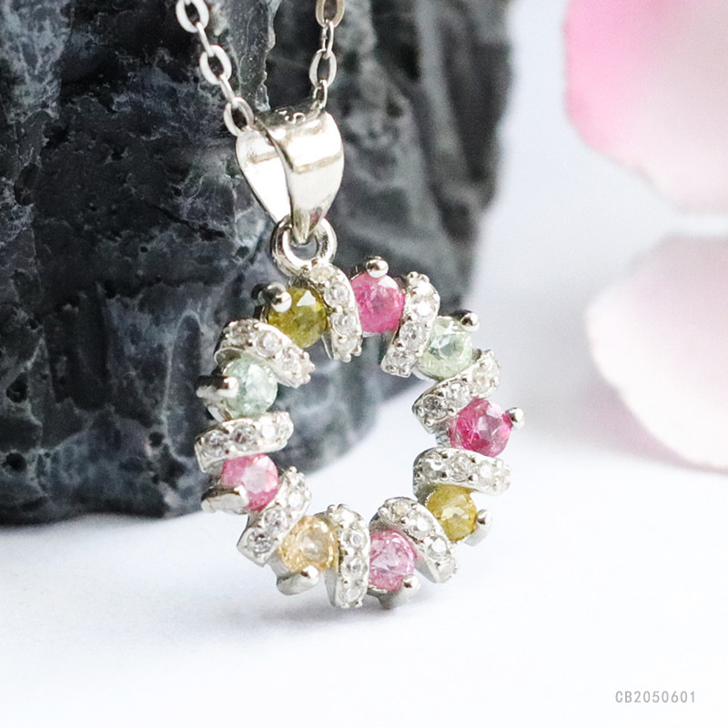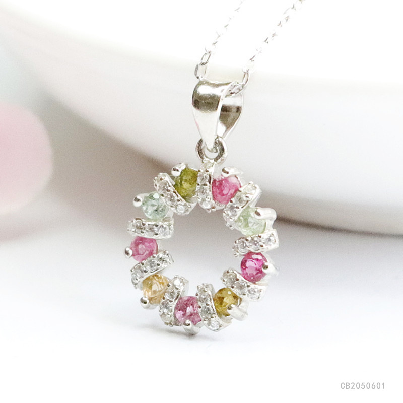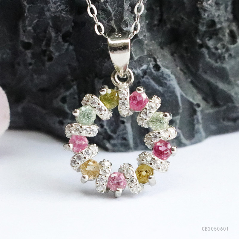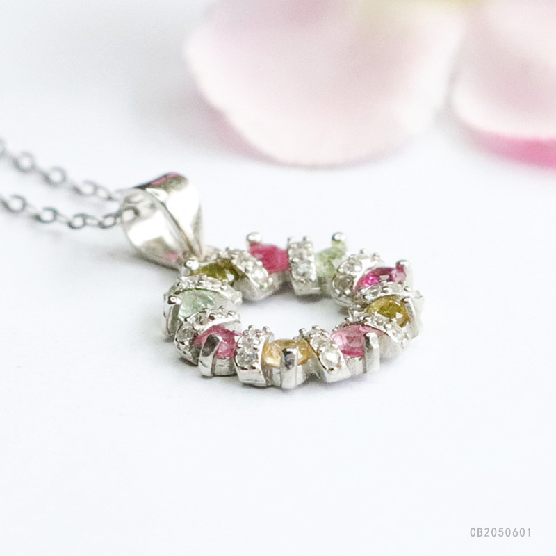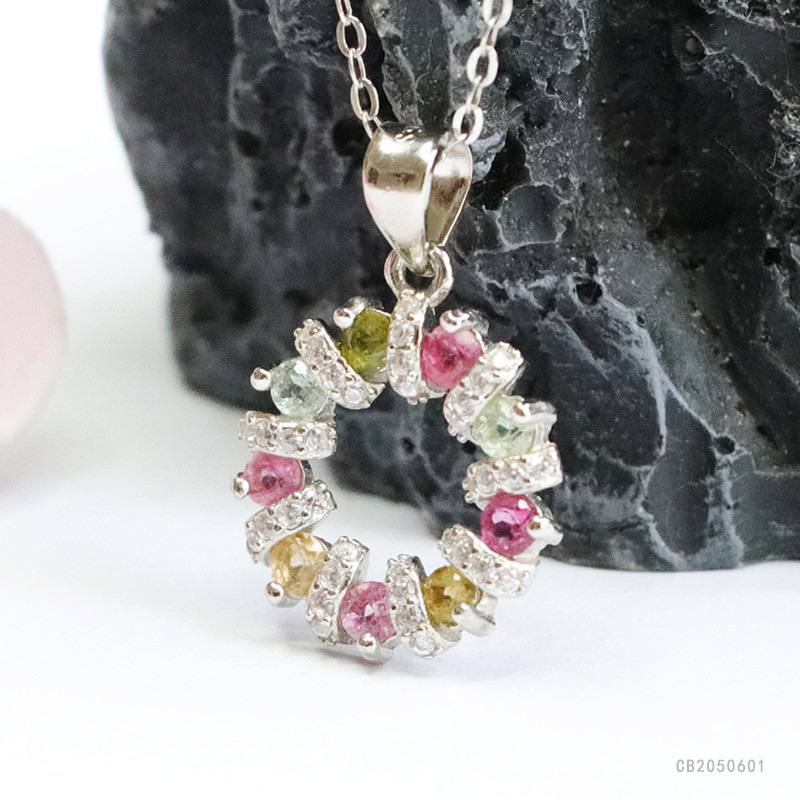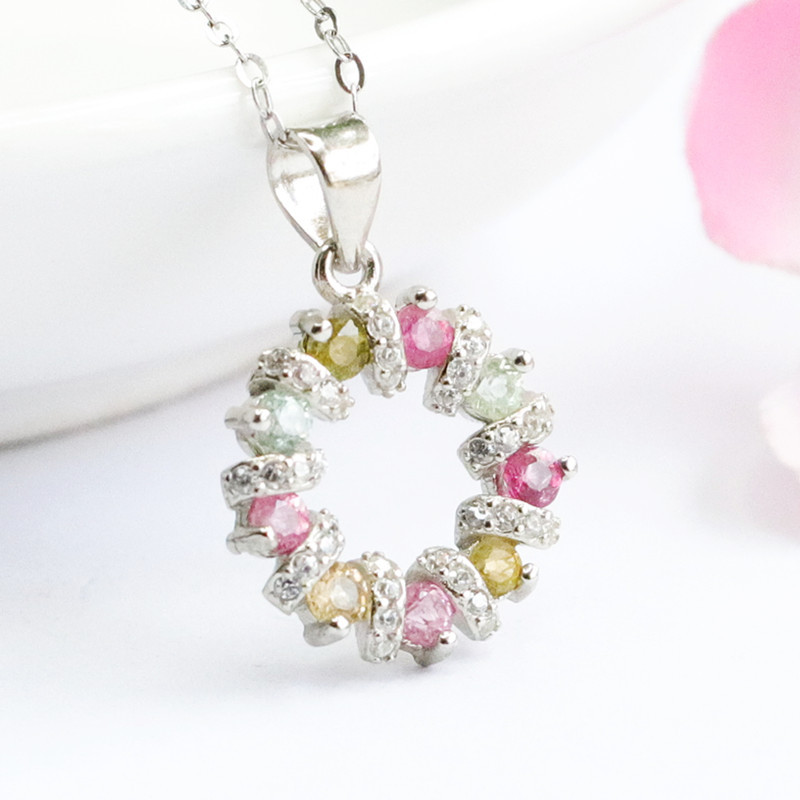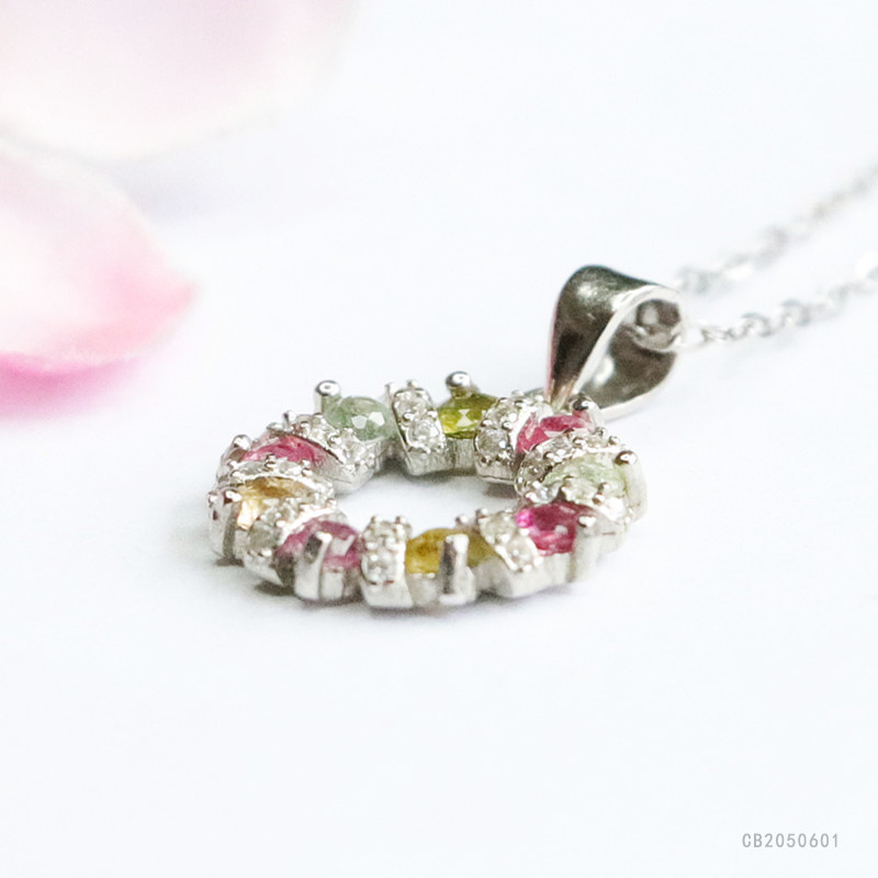 Серебряный кулон в виде радужного турмалинового пончика S925
