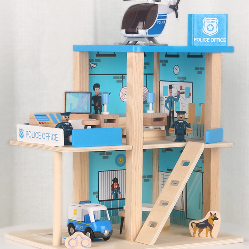 Трансграничный детский ролевой деревянный игровой домик Вилла игрушечная имитация пожарной части полицейский участок модель парковки