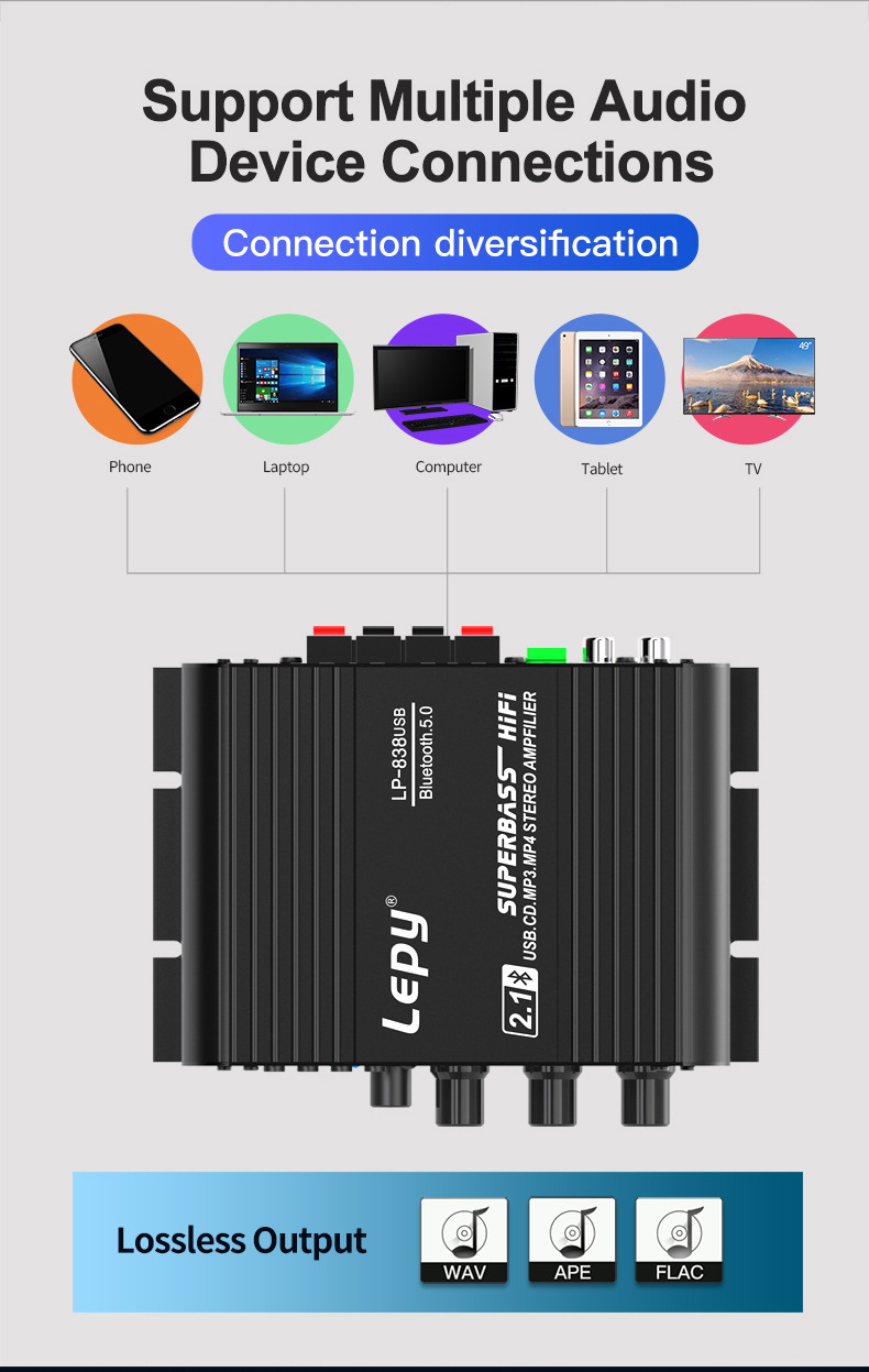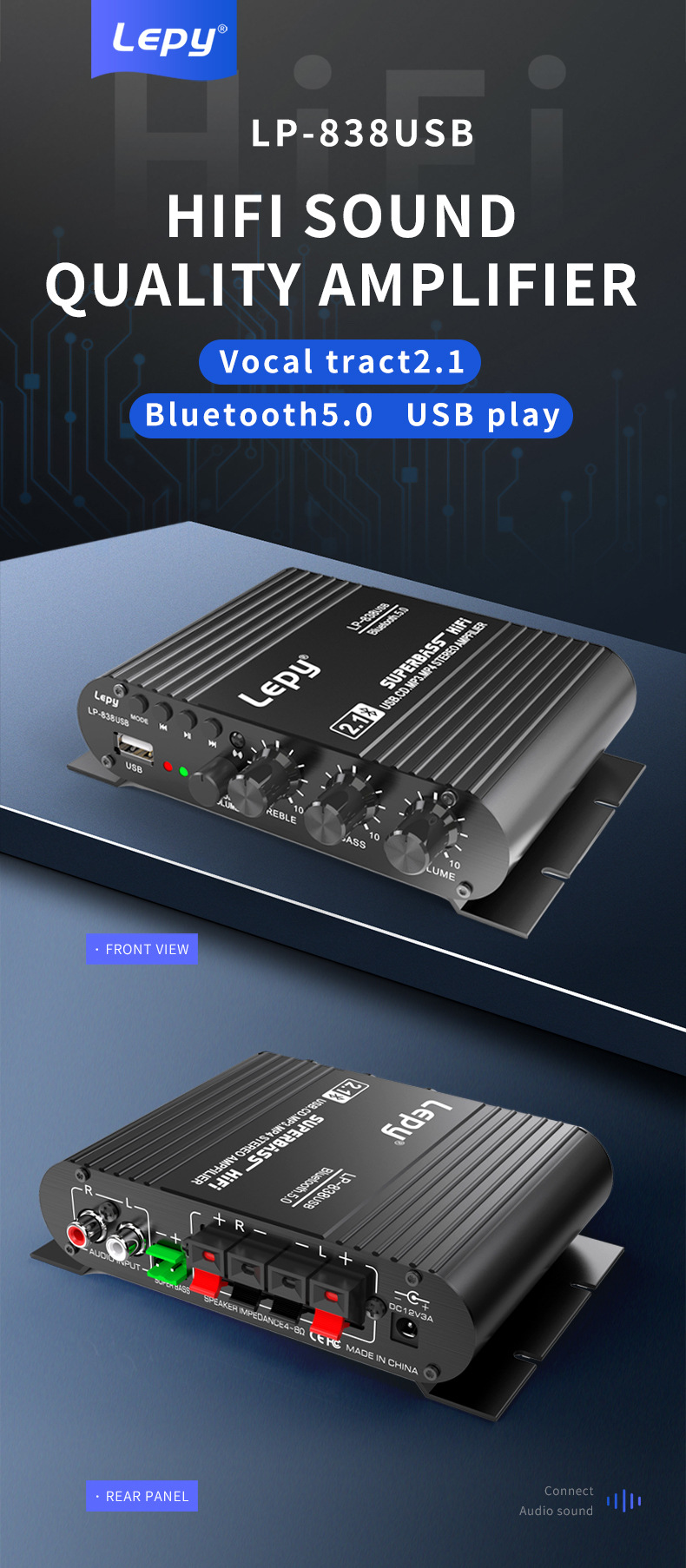 LEPY838 Bluetooth сабвуфер усилитель мощности, 12 В автомобильный компьютер настольный динамик U диск воспроизведение музыки без потерь