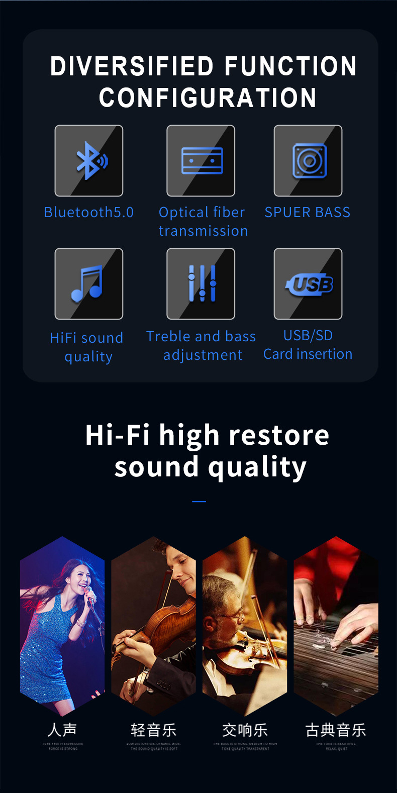 Output power:38Wx2R/LStereo sound+50WX1 Subwoofer