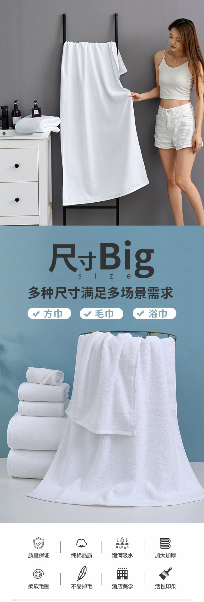 Отель белое полотенце банное полотенце оптом хлопок отель Ванна горячий источник пот Паровое полотенце Охрана труда белое полотенце Пользовательский логотип