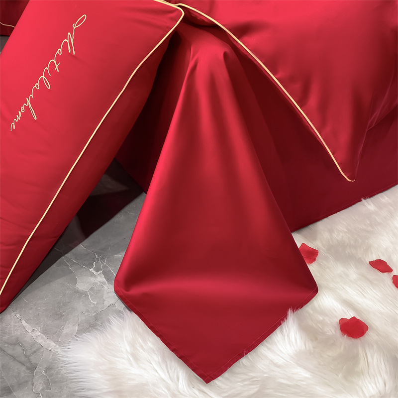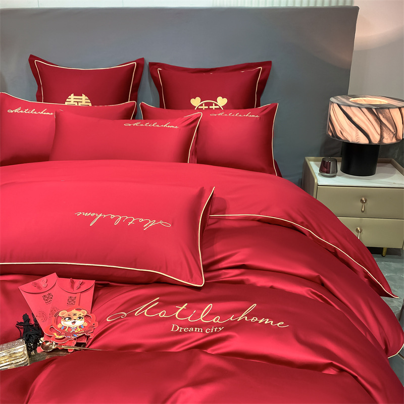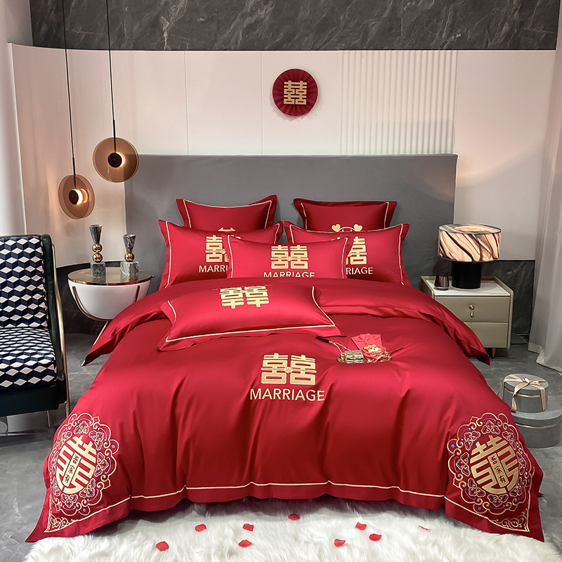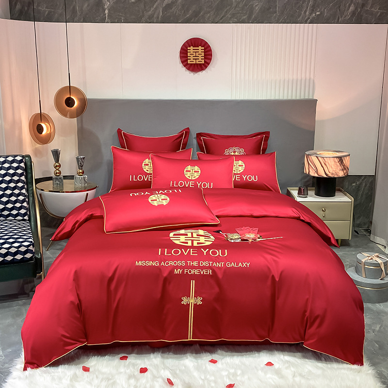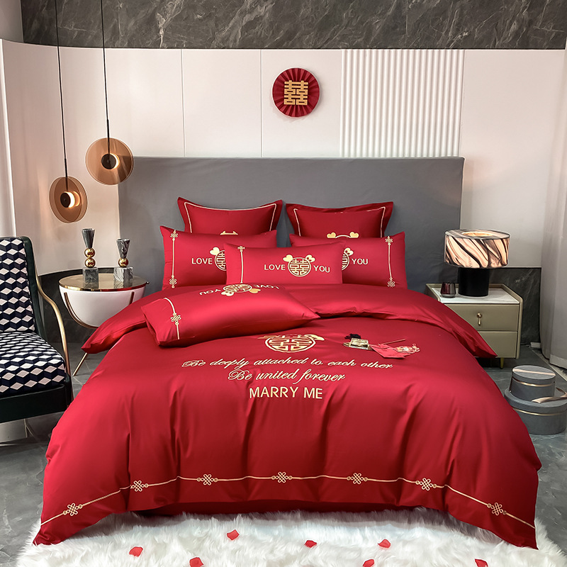 Свадебная кровать из четырех частей свадебный красный комплект из четырех частей мыть хлопок красный Вышивка Набор из четырех частей комплект для вышивания производители