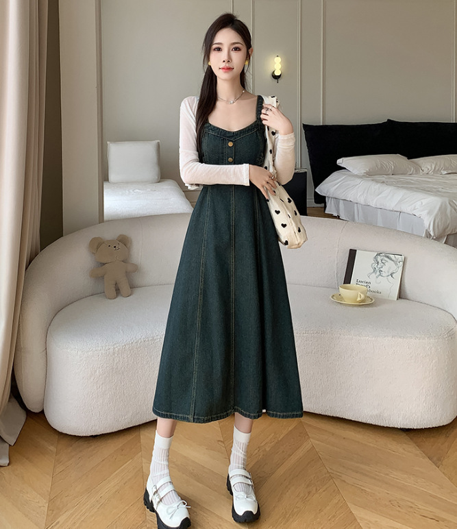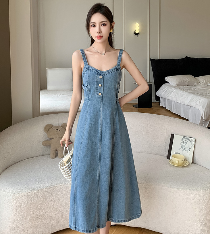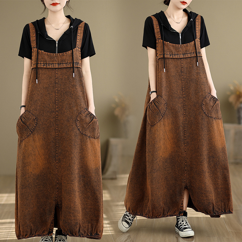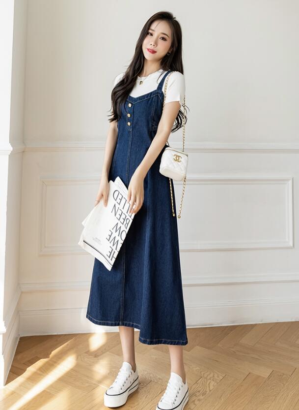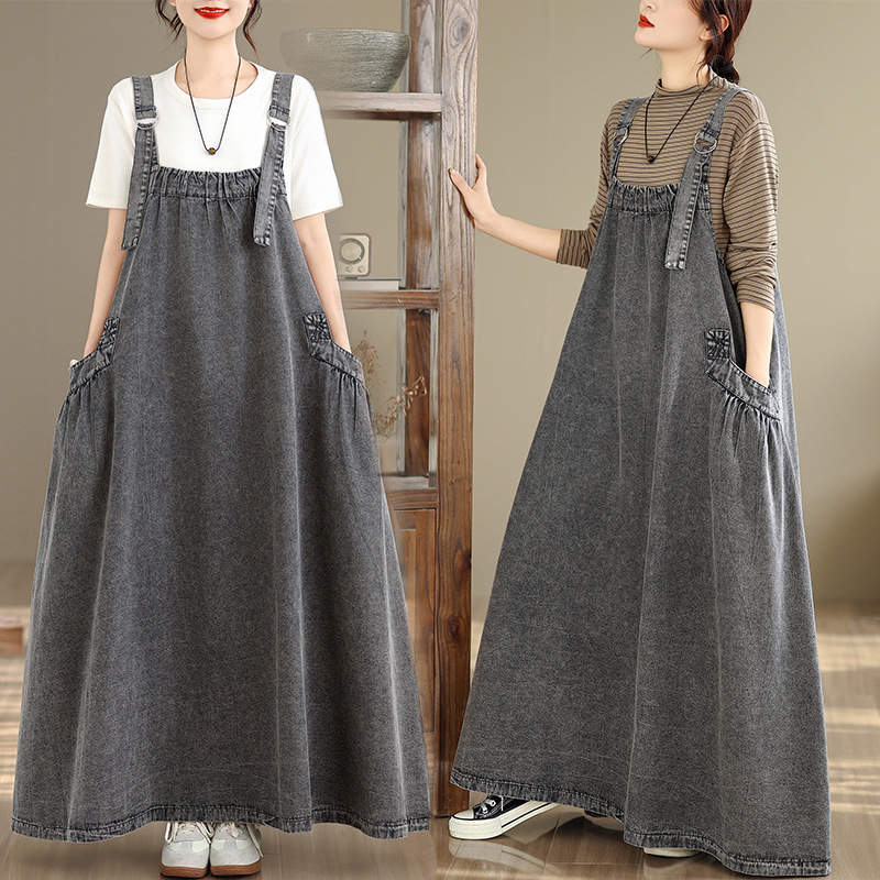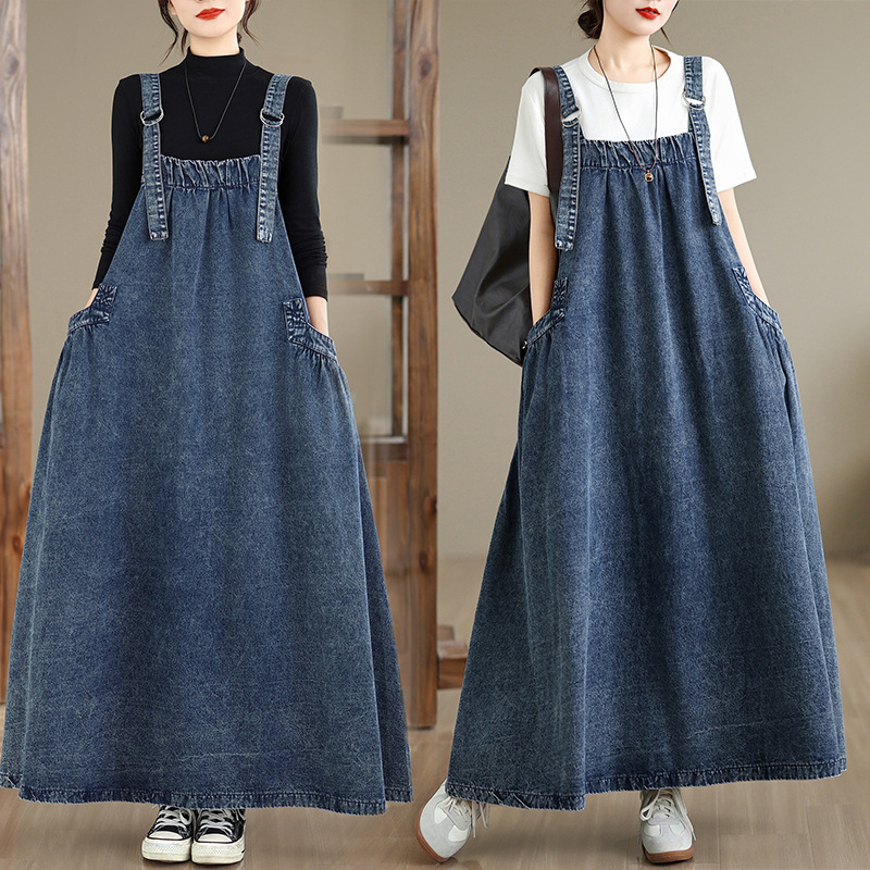 Японские и корейские большие размеры женской весной и летом средней и длинной юбки-подвески женская свободная тонкая джинсовая юбка-ремешка