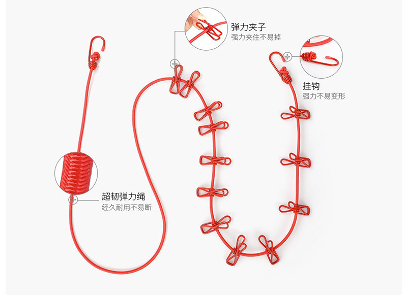 1.82m латексная веревка + 12 зажимов (упакованы в цветочные пакеты)