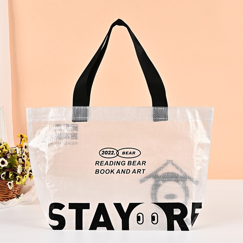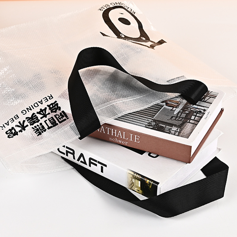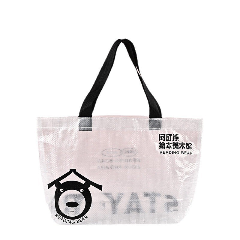 Прозрачная ручная сумка из тканого полипропилена с большой вместимостью, цветной печатью и ламинацией, для рекламы, покупок, образования и обучения