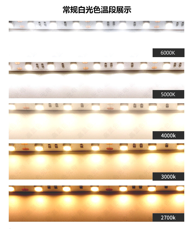 3000K (теплый белый); 4000K (белый); 6500K (холодный белый)