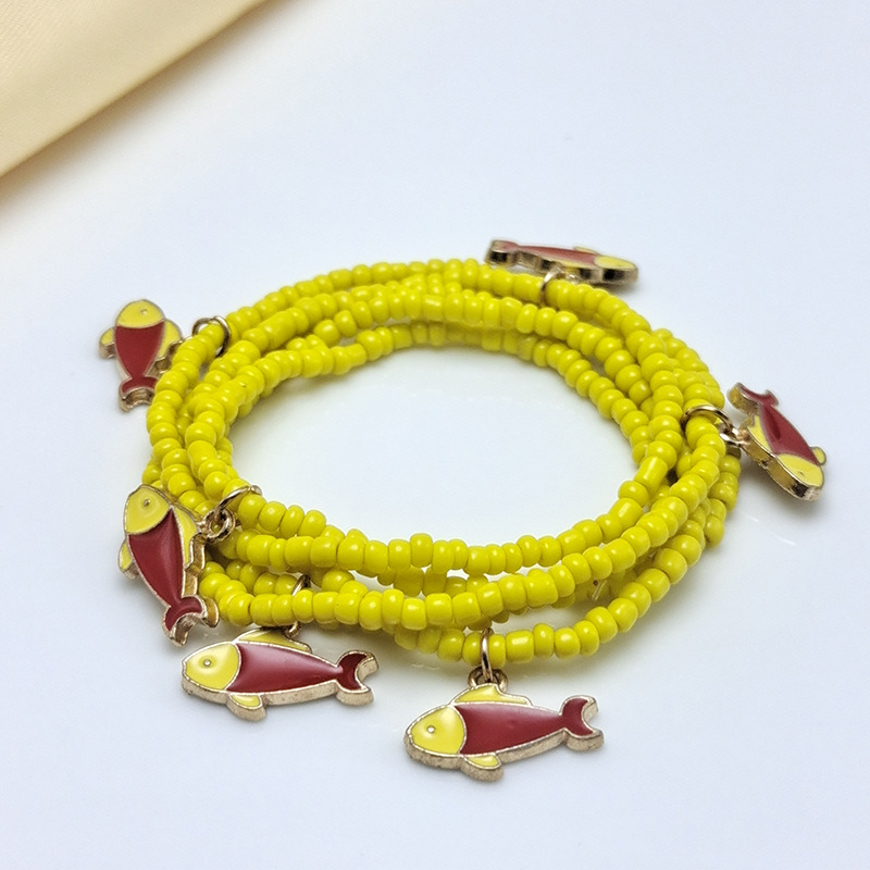 Европейские и американские трансграничные ювелирные изделия: модная бижутерия из стеклянных бусин, подвеска в виде рыбки, разноцветная эластичная ручная работа, бисерная цепочка на тело, поясная цепочка