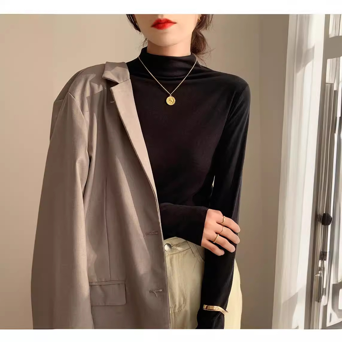 Швейная фабрика Гуанчжоу предпринимает двустороннюю бархатную обработку базовой рубашки с воротником с половинным высоким воротником по индивидуальному заказу с четырьмя иглами и шестью линиями