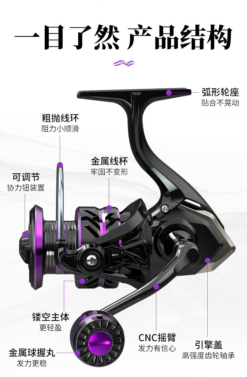 2、航空铝合金线杯,硬拽不伤线,线杯倒角设计,出线顺畅投抛更远;