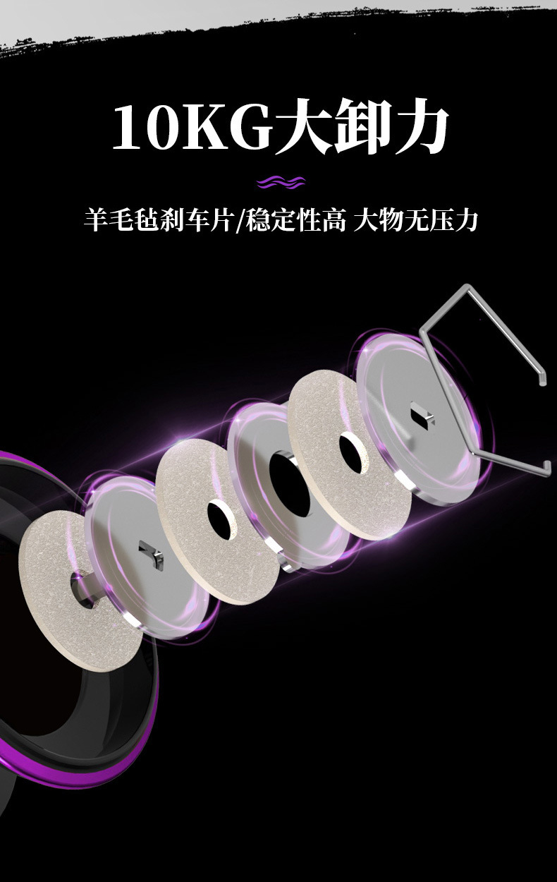 1、特制加大卸力盖,10KG超大刹车力,羊毛毡刹车片,无惧大物;