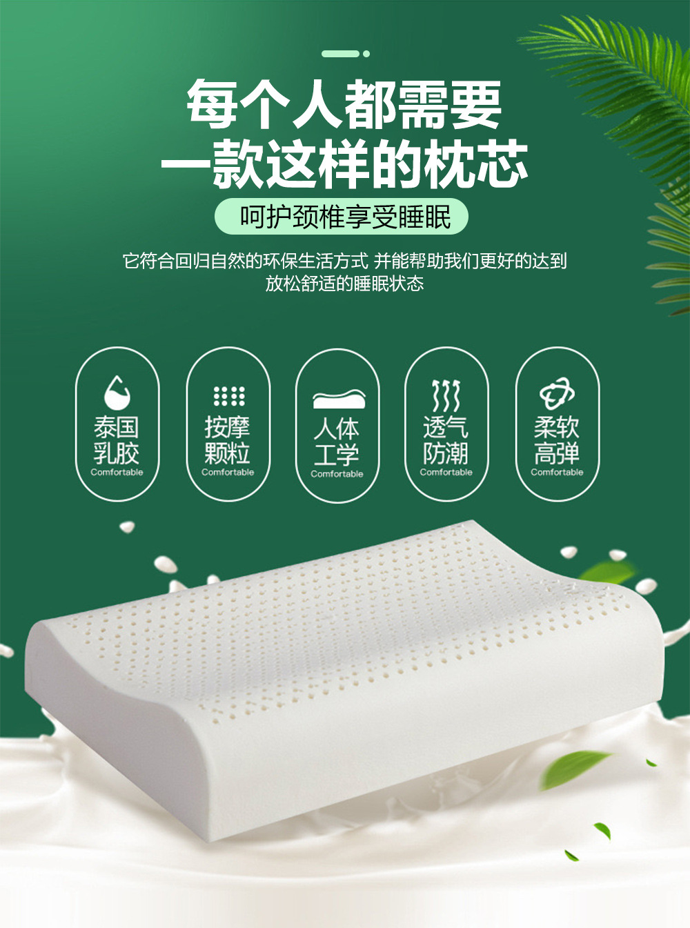 Аутентичная авторизованная тайская подушка из натурального латекса, приятная для кожи прямоугольная массажная подушка, сердцевина подушки для отеля, детская латексная подушка