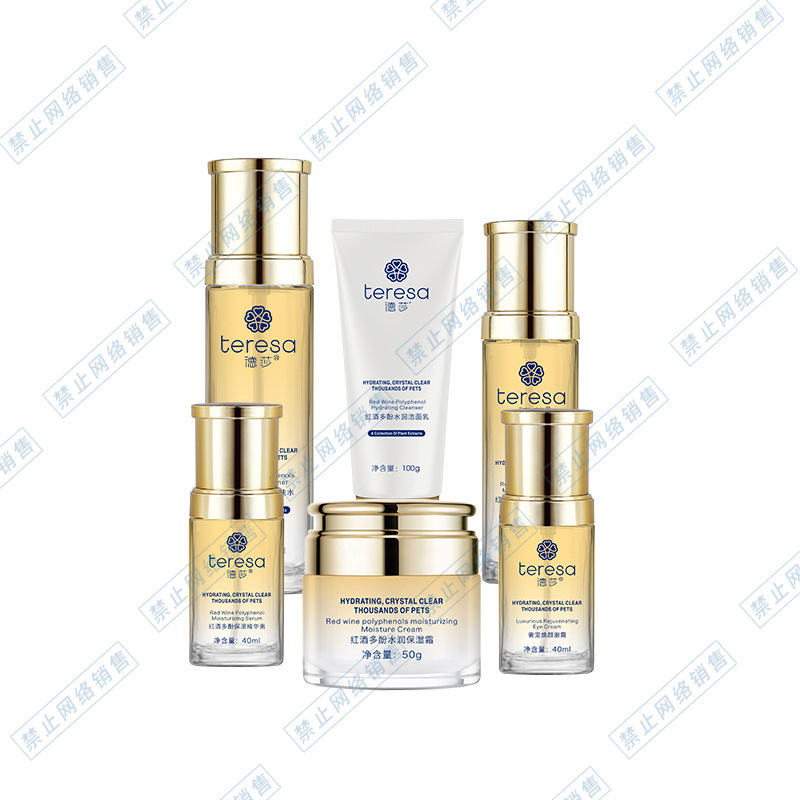 Красное вино Полифеноловая увлажняющая эссенция 40 мл; Красное вино полифенолы увлажняющий крем 50 г; Luxury Pet Осветляющий крем для глаз 40 мл; Полифенолы красного вина Увлажняющее очищающее средство для лица 100 г; Красное вино полифенолы увлажняющий лосьон 100 мл; Красное вино полифенолы увлажняющая и укрепляющая вода 120 мл