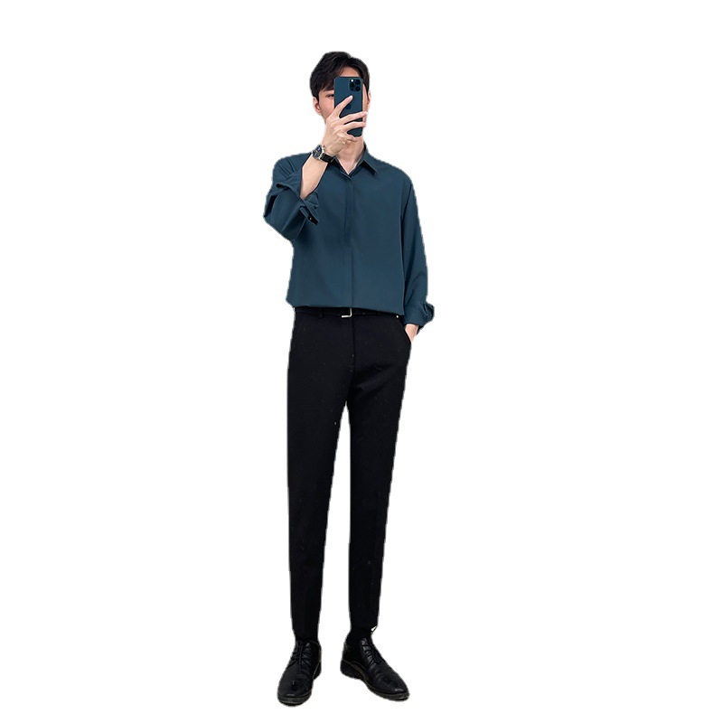Рубашка мужская летняя легкая зрелая ветровая Мужская Корейская версия тонкой деловой легкой одежды с высоким чувством рубашки с длинными рукавами Мужская Весна и осень