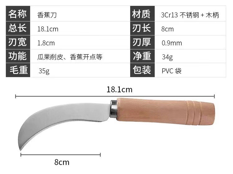 Нож для чистки фруктов из нержавеющей стали с деревянной ручкой, односторонний, для ананасов, многофункциональный, для бананов, в наличии