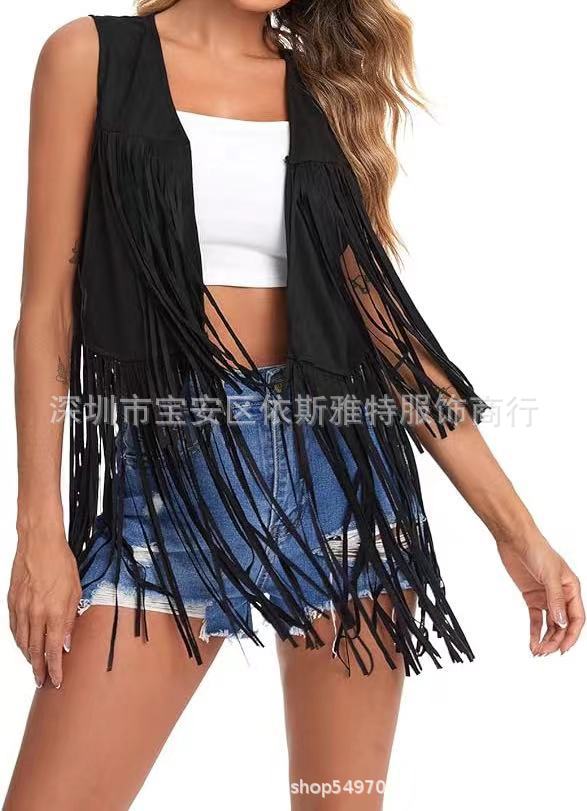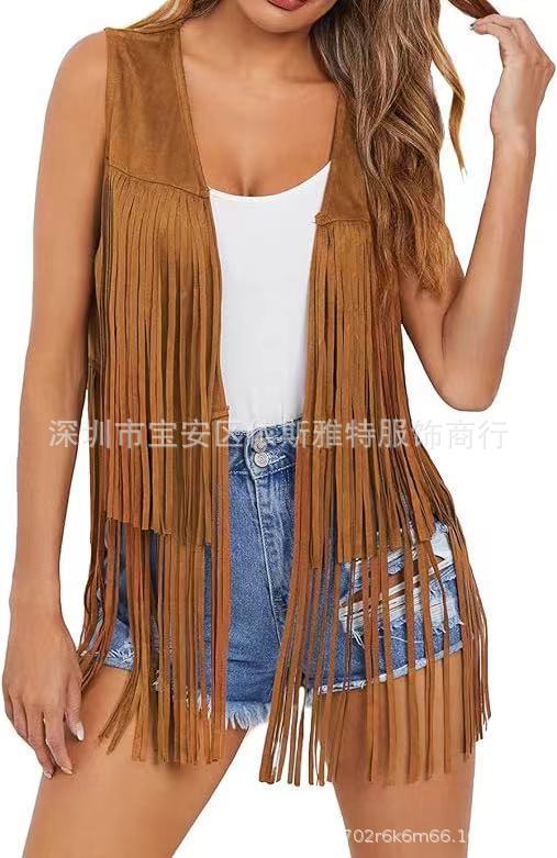 Амазонка 70-х годов европейский и американский стиль шаль замшевая кисточка жилет куртка для женщин мужской западный ковбой
