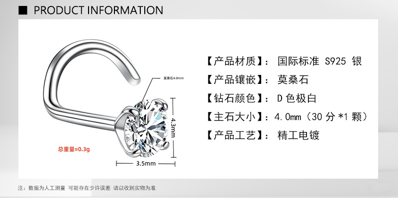Европейские и американские серьги-гвоздики для носа из 14-каратного золота с муассанитом, выдвижного типа, эксклюзивные роскошные украшения для носа из серебра 925 пробы, трансграничная оптовая продажа в прямом эфире на TikTok.