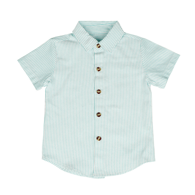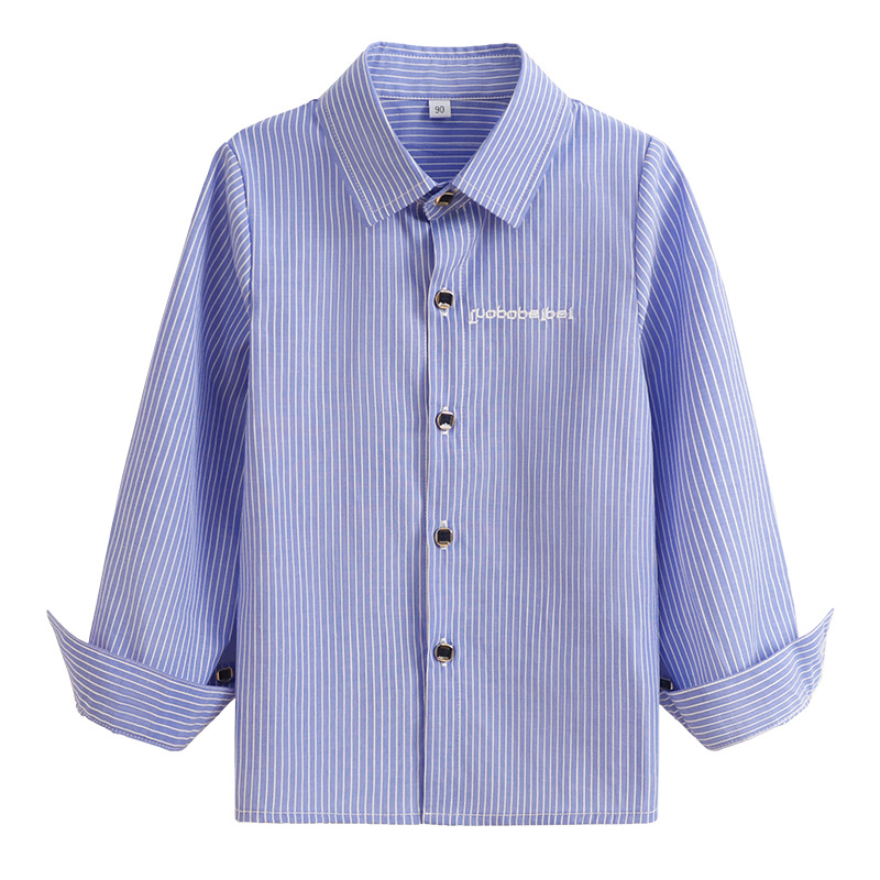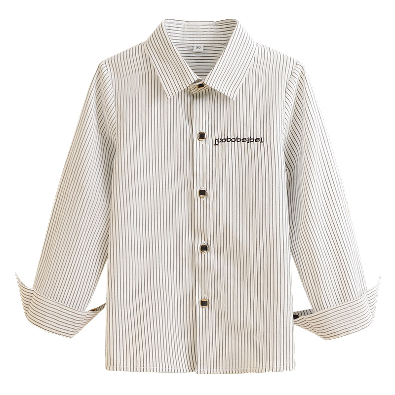 Детские рубашки 2023, рубашки с воротником в корейском стиле для мальчиков, для малышей и маленьких детей, весенние и летние полосатые базовые рубашки оптом, модный корейский стиль