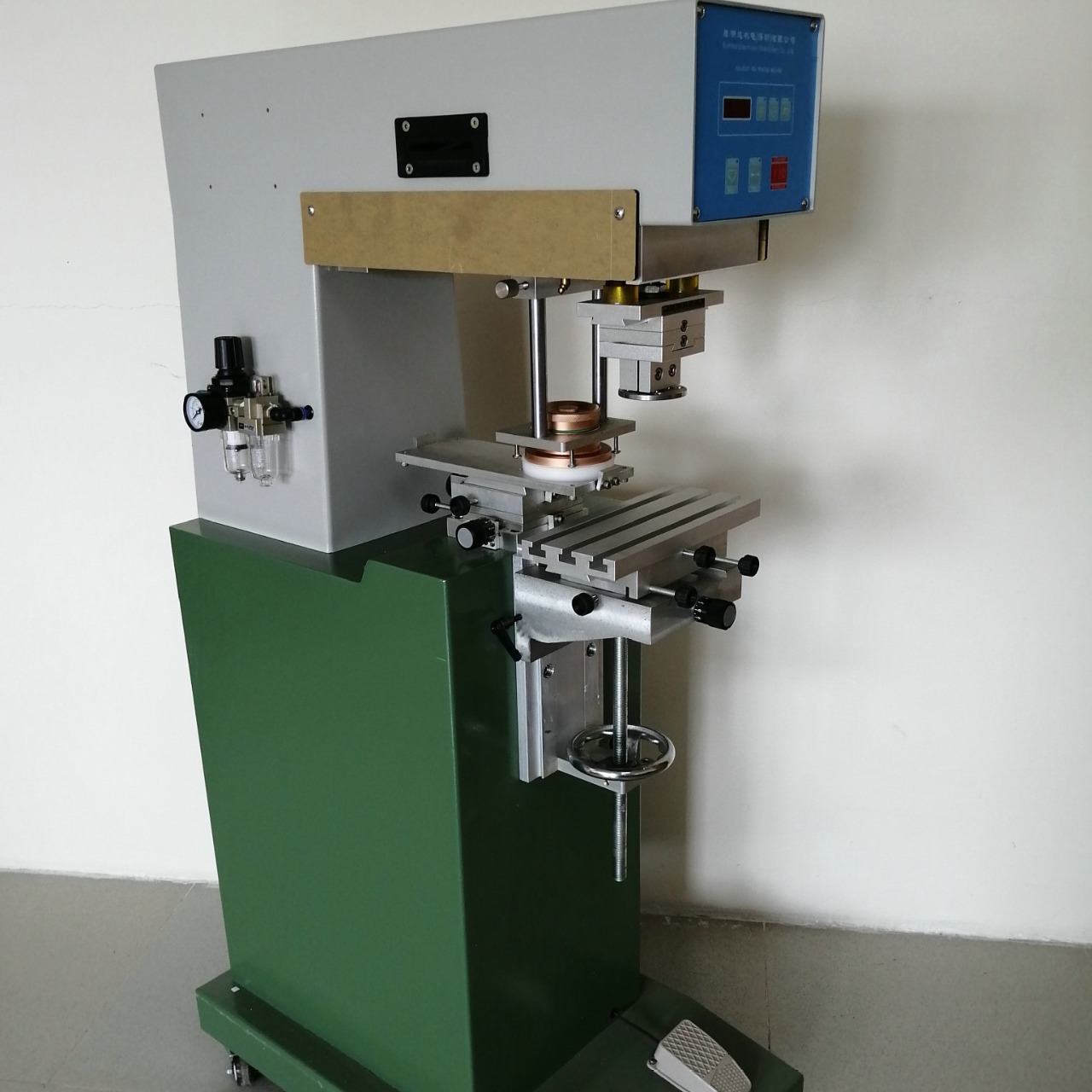 一、移印机工作原理和应用范围: 移印机 是一种采用移动式印刷法进行印刷的机器,所谓移印法,就是将要印刷的图案文字通过正片菲林“投像”在钢板上,蚀刻成具有一定深度的凹版,把凹版安置在油墨盘上,机器工作时自动上墨并刮掉图案以外的油墨,然后胶印头(简称胶头)压向凹版,把图案油墨取走,转移到被印物体上。 移印机印刷效果精美、细致,并且及其适合于小面积凹凸面、弧面、平面等其他印刷方法难以实现的不规则产品上。广泛应用于日用品、玩具、制笔、电子、电器、手套、口罩、服装衣帽鞋类的商标等五金轻工和食品包装等行业。移印机适用于对:塑料、尼龙、皮革、棉布、金属、玻璃、陶瓷木器等等各种材质的产品上印LOGO、图案和参数文字的印刷,也可以针对特殊产品需求设计专用机型 。
