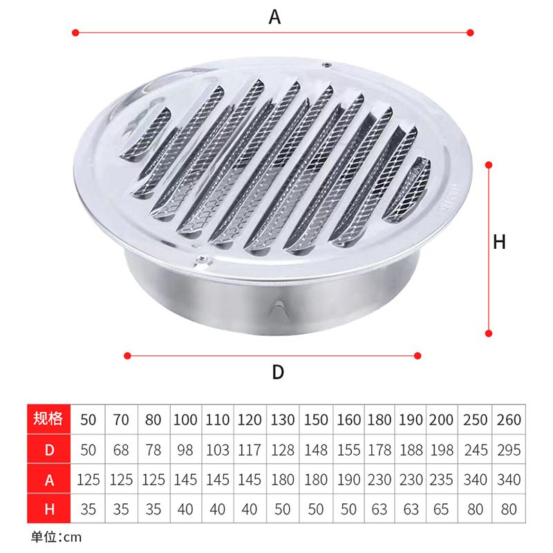 Вытяжной вентилятор для унитаза Крышка от москитной сетки Капюшон из нержавеющей стали 304 Внешняя стена Выход воздуха Плоская головка Непромокаемая вытяжная вентиляция