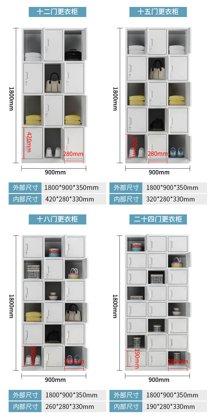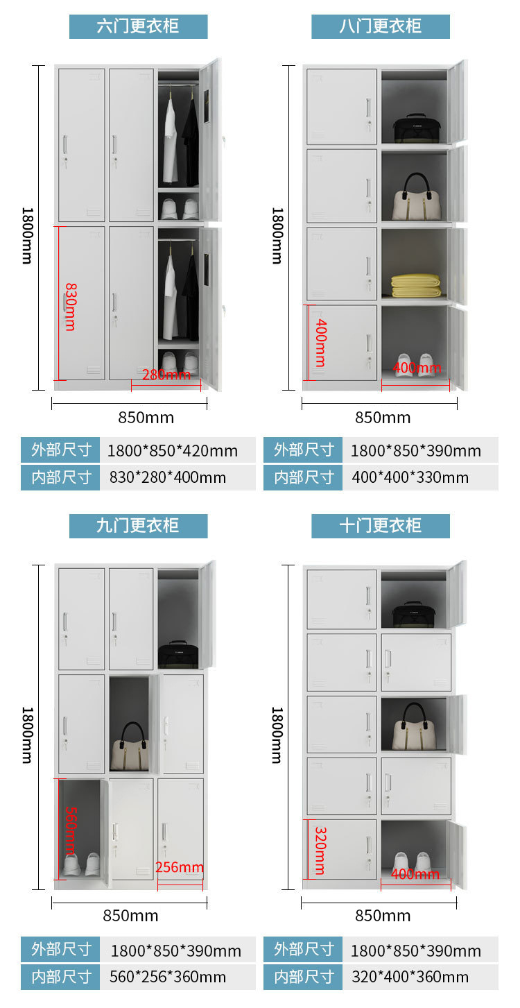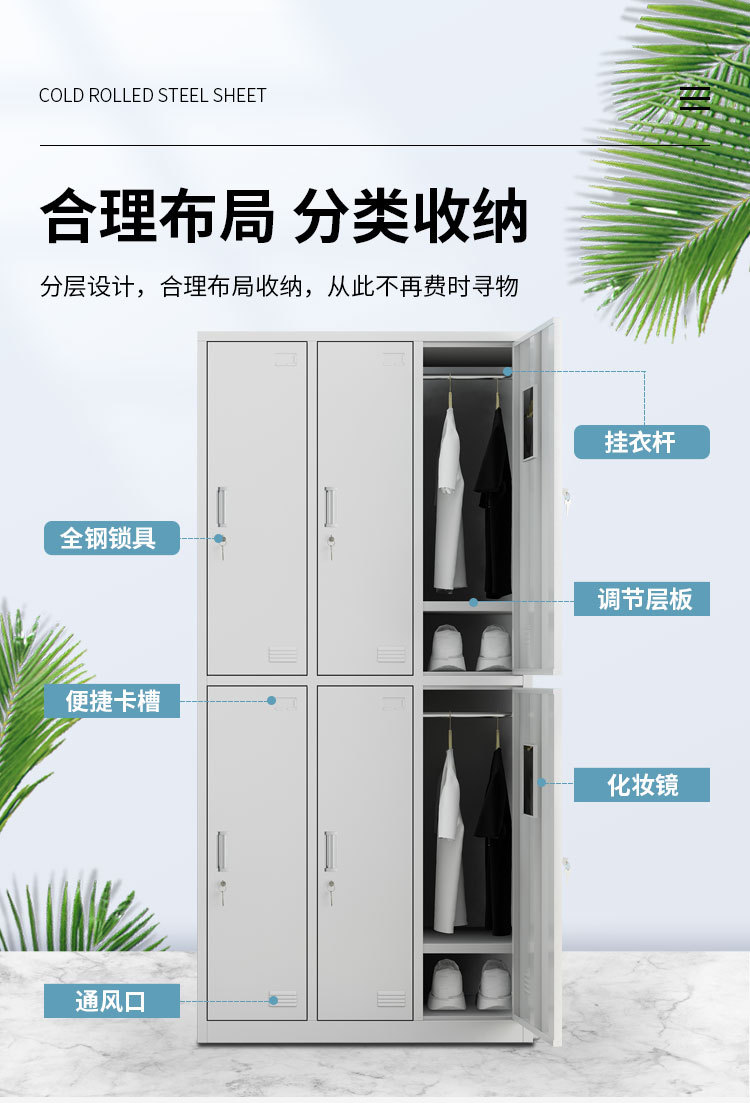 定制浴室泳池铁皮储物柜 落地带锁车间员工柜 宿舍九门钢制更衣柜