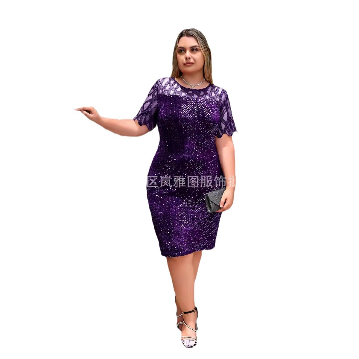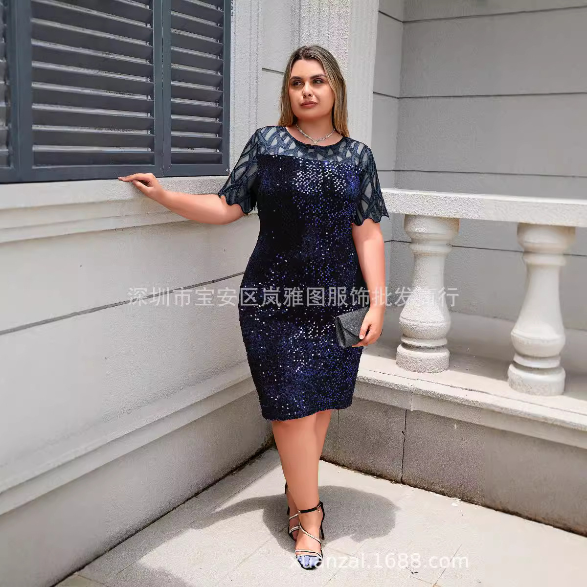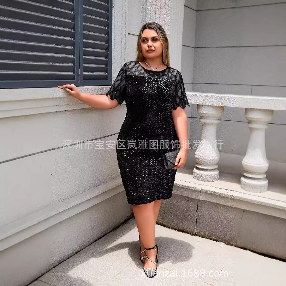 Летнее платье с пайетками в европейском и американском стиле для женщин больших размеров, eBay AliExpress 2024, реальные фото, очень большой размер