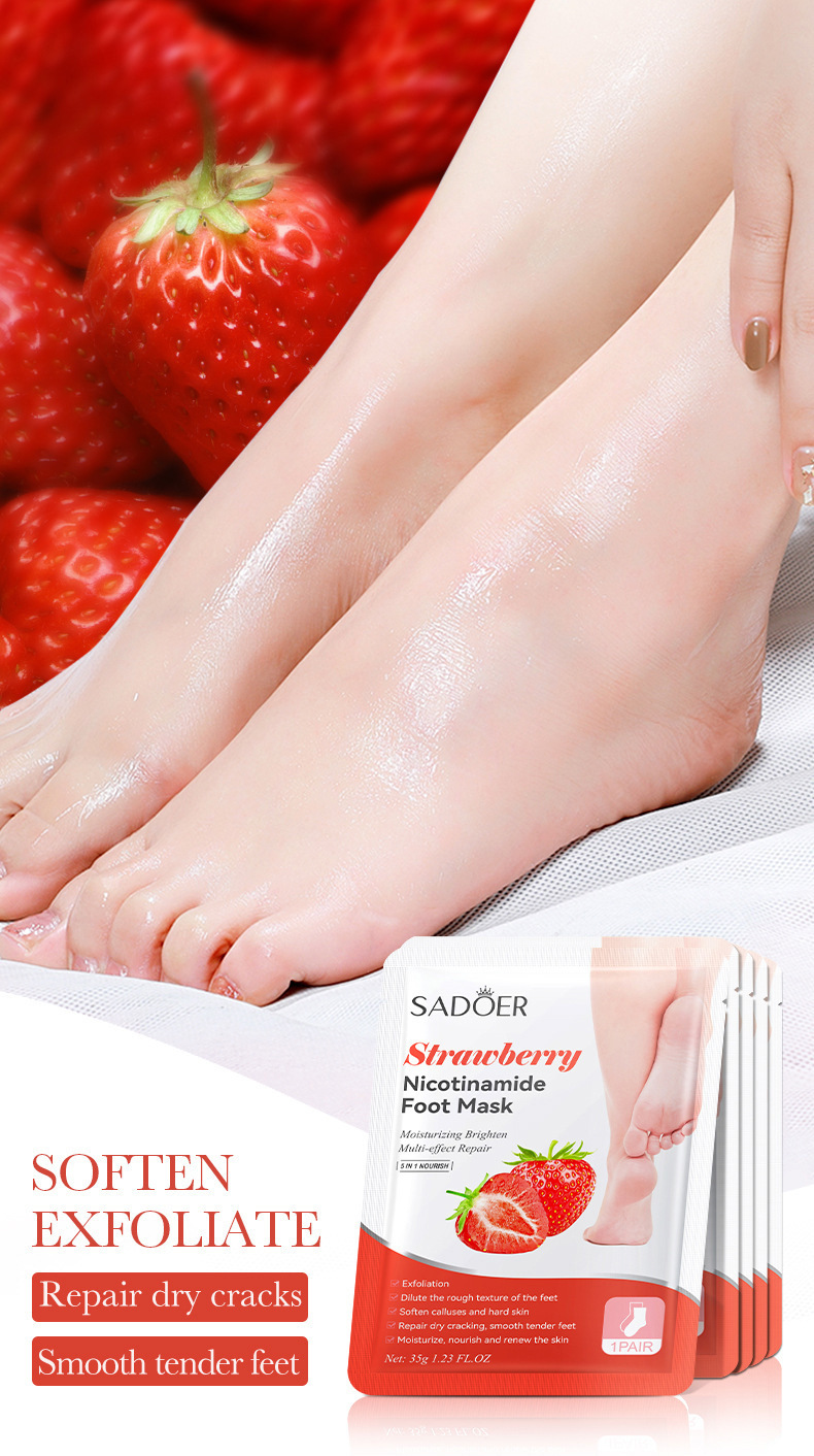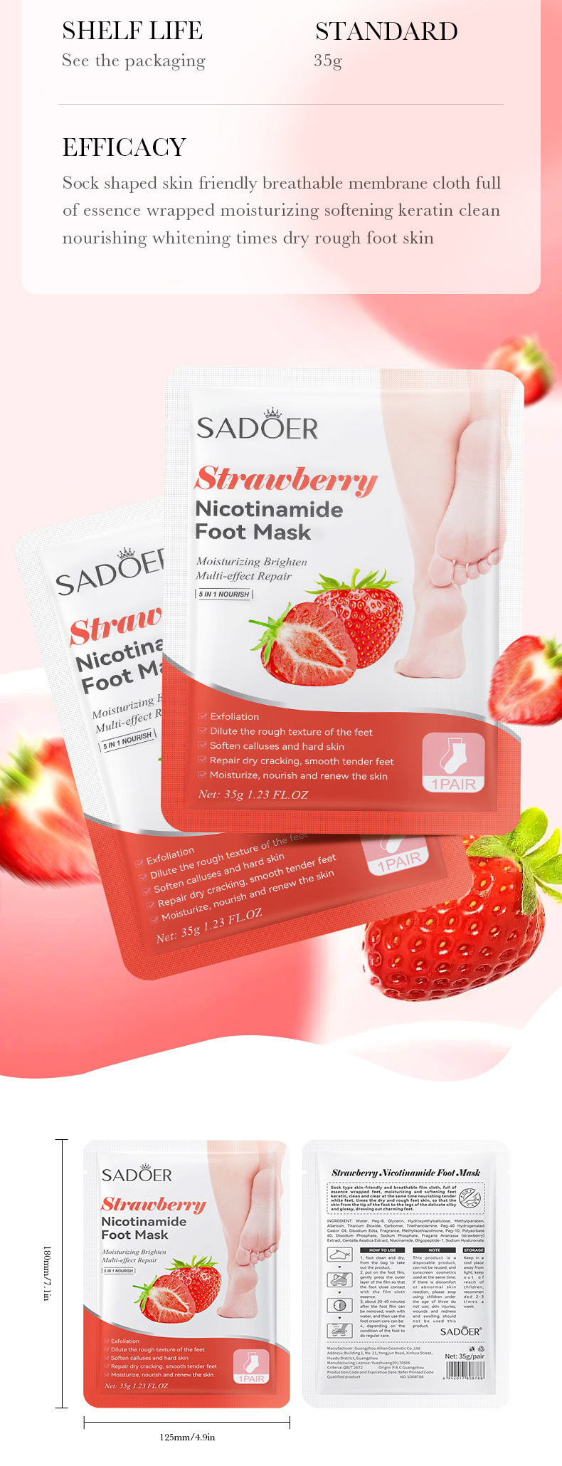 NO.SD08788 SADOER草莓烟酰胺柔嫩亮泽足膜(外文版)35g/对