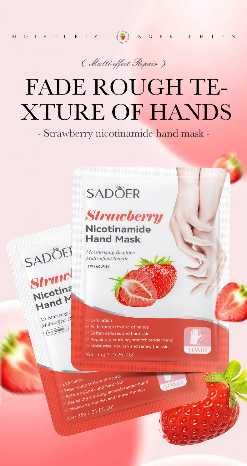 NO.SD08795 SADOER草莓烟酰胺柔嫩亮泽手膜(外文版)35g/对