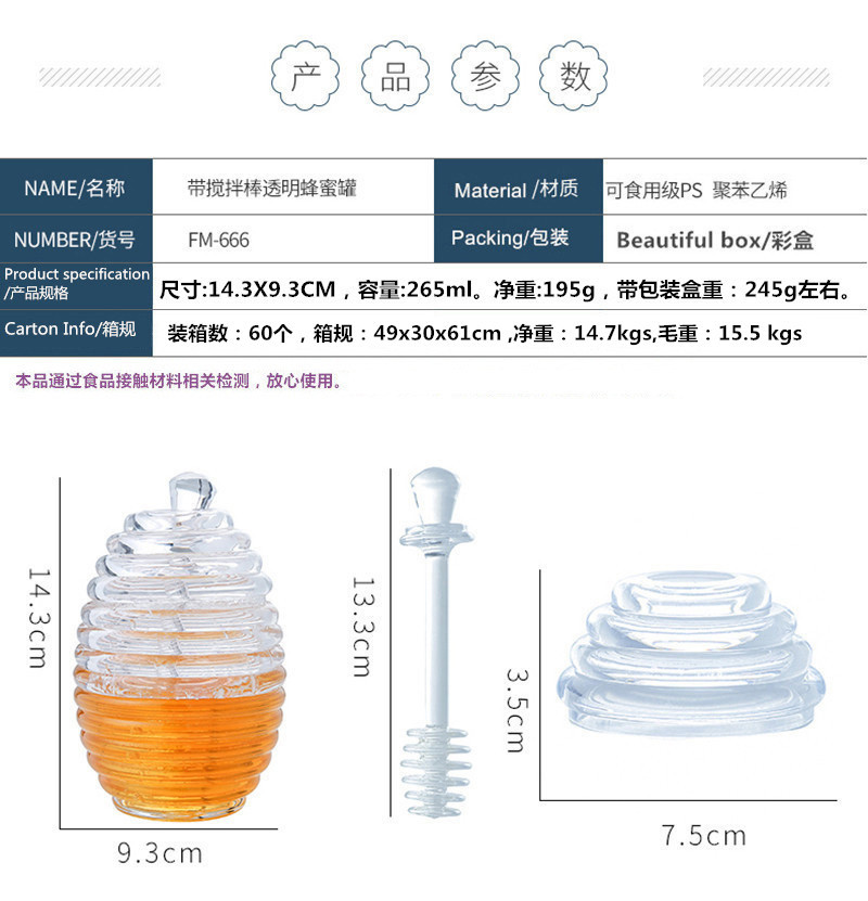 Трансграничная Новая прозрачная медовая палочка для перемешивания меда 20 г прямые поставки с завода