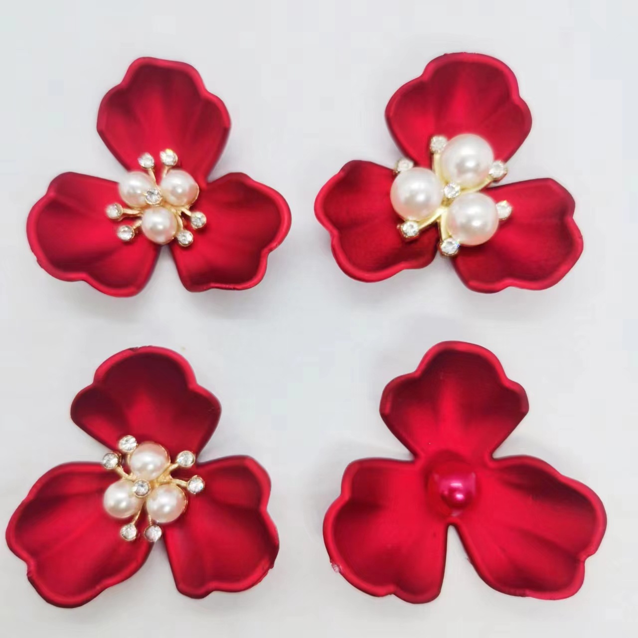 Красный; Белый пластиковый цветок сердце; Центр цветка белого сплава; Центр Цветка Красного сплава; Красный Жемчуг Белый Алмазный Сплав Цветок Сердце