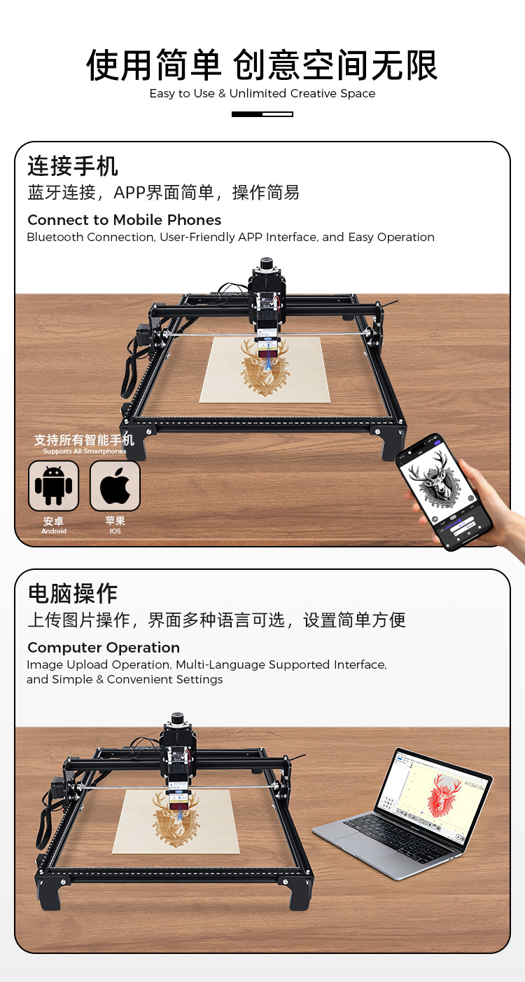 4240 двухосный лазерный гравировальный станок 20 Вт 40 Вт мощная гравировка для мобильного телефона управление через приложение двухосная гравировка маленькая