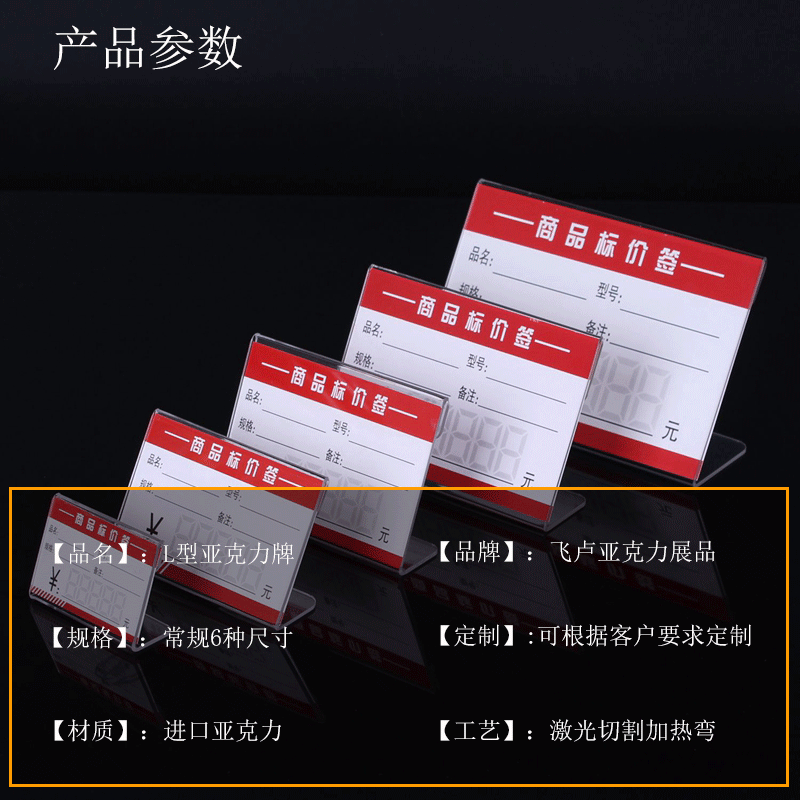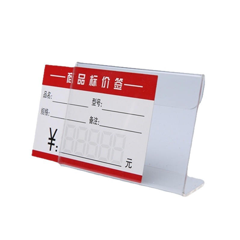 Оптовая оптовая продажа акриловых прозрачных L-образных столов товарный ценовой знак Органическое стекло ценовой дисплей рекламный стол