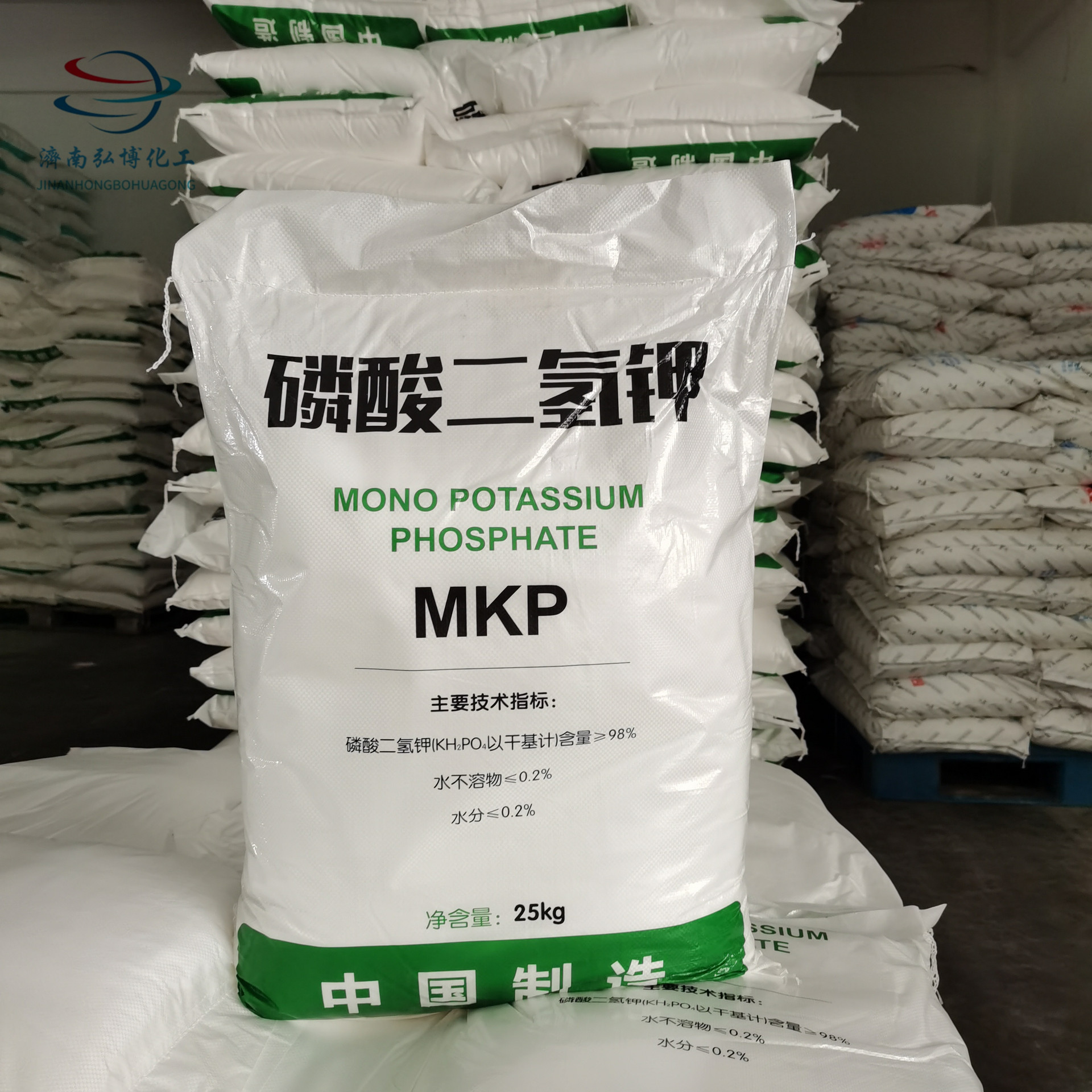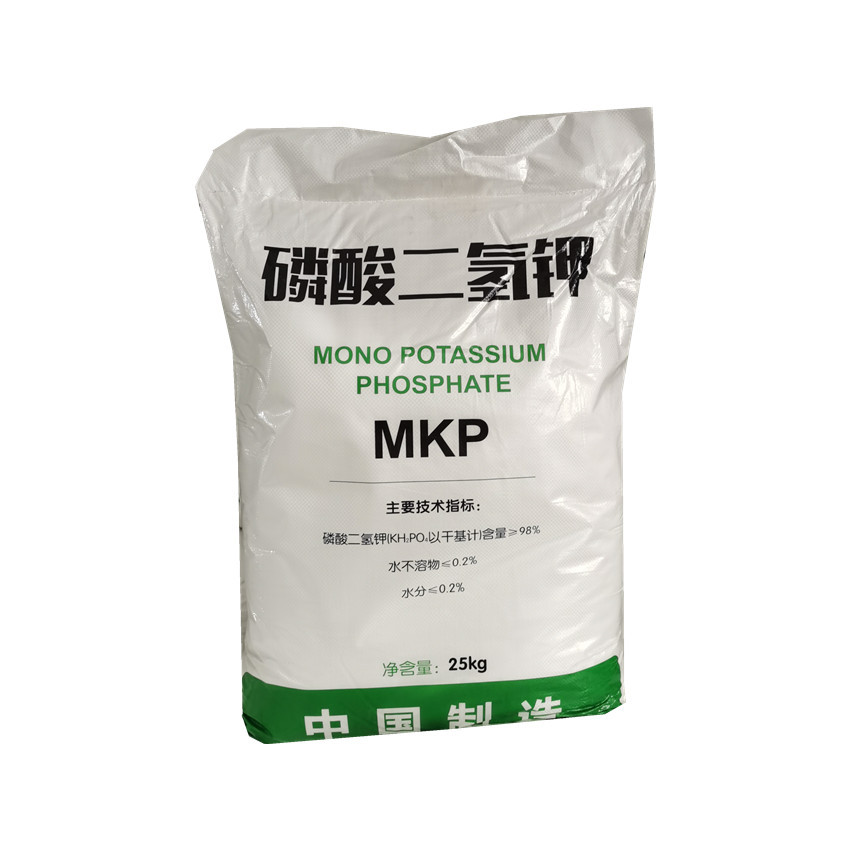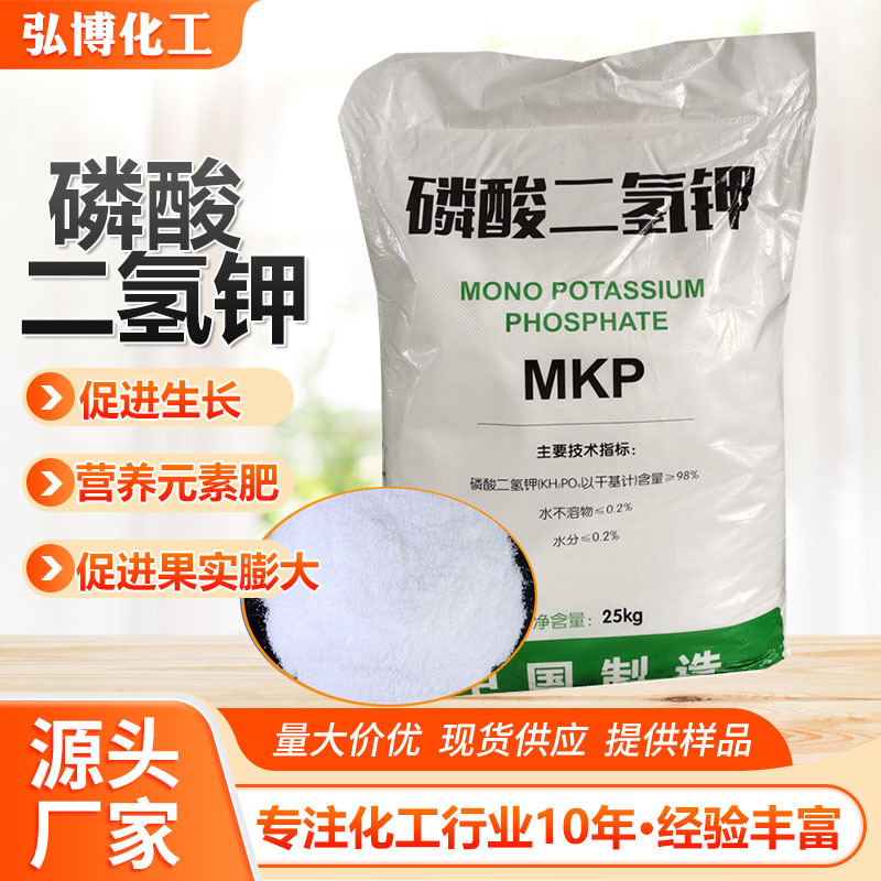 农业上用作高效磷钾复合肥;磷酸二氢钾产品广泛适用于各类型经济作物、粮食、瓜果、蔬菜等几乎全部类型的作物,各省均由当地的农科院所、土肥站等专家机构针对磷酸二氢钾适用于各类典型作物进行了很多的相关应用实验,通过各地对各类型作物的实际施用效果证明磷酸二氢钾具有显著增产增收、改量优化品质、抗倒伏、抗病虫害、防治早衰等许多优良作用,并且具有克服作物生长后期根系老化吸收能力下降而导致的营养不足的作用。磷酸二氢钾属新型高浓度磷钾二元素复合肥料,其中含五氧化二磷52%左右,含氧化二钾34%左右。烤烟需磷、钾量大,特别是需钾量大。磷酸二氢钾是用于烤烟的一种较为理想的新型肥料。为了探索磷酸二氢钾在烤烟上的使用价值和施用方法,以提高烟叶品质。磷酸二氢钾用在棉花上能够控制棉花徒长,增加植株花苞数量。磷酸二氢钾广泛运用于滴管喷灌系统中。