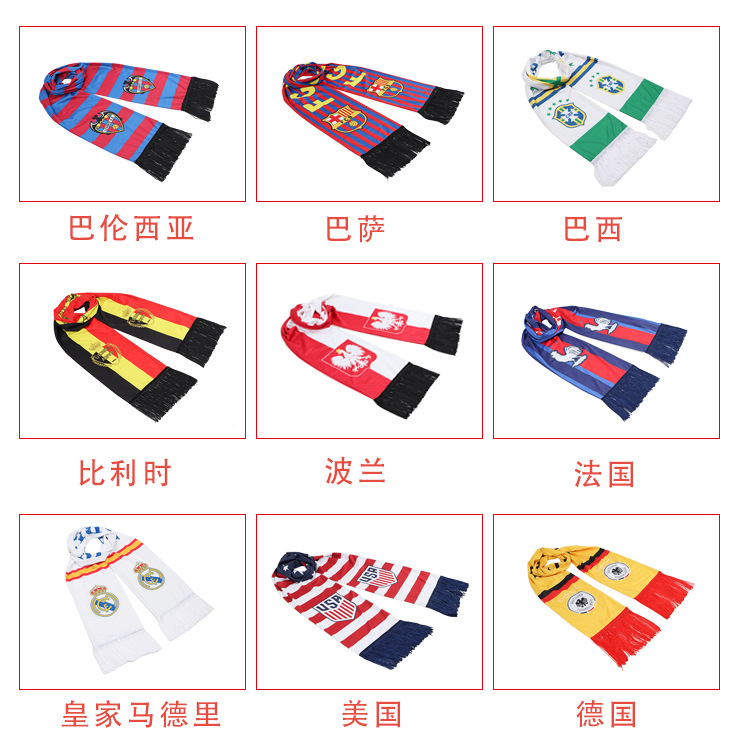 Фабричный шарф для мирового футбольного турнира на заказ акриловое атласное полиэфирное полотенце с кисточками и принтом