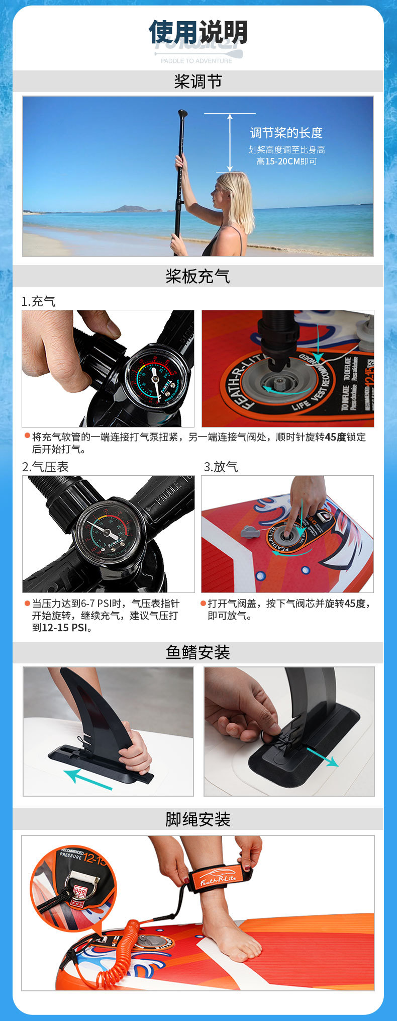 Ручной насос, рюкзак, весло, веревка для ног, ласты, водонепроницаемая сумка для мобильного телефона, ремни.