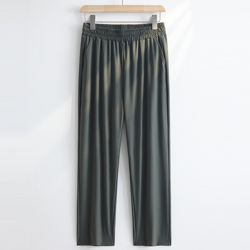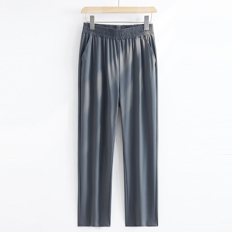 Брюки из ледяного шелка с вышивкой Sika больших размеров, женские летние тонкие прямые повседневные брюки, женские брюки, утягивающие брюки для мам среднего возраста, с девятью точками