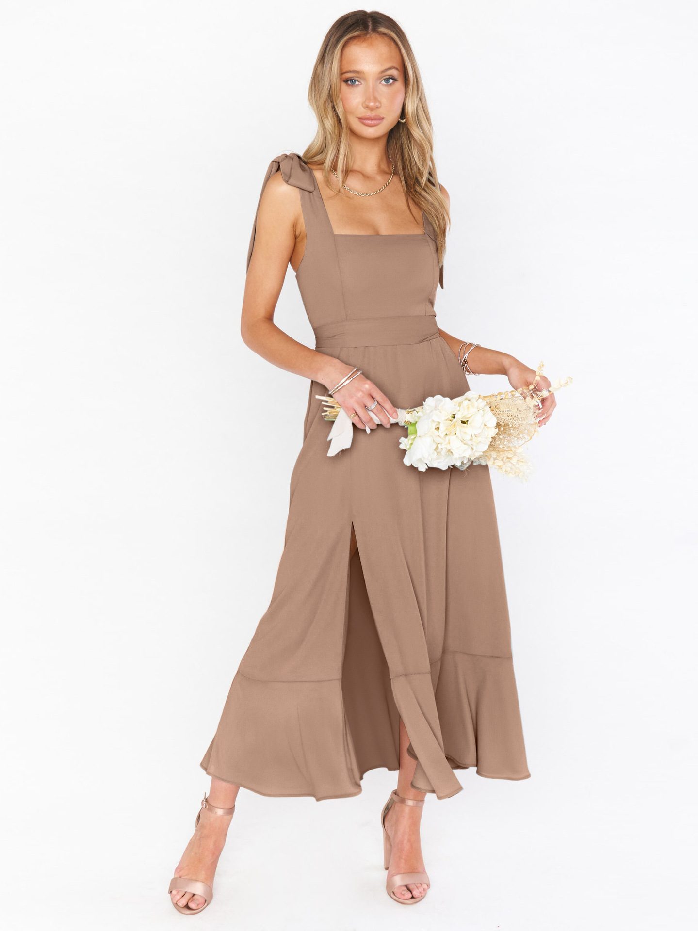 Самая популярная женская одежда Amazon с разрезом по подолу, платье с рюшами на шнуровке, элитная французская элегантная длинная юбка