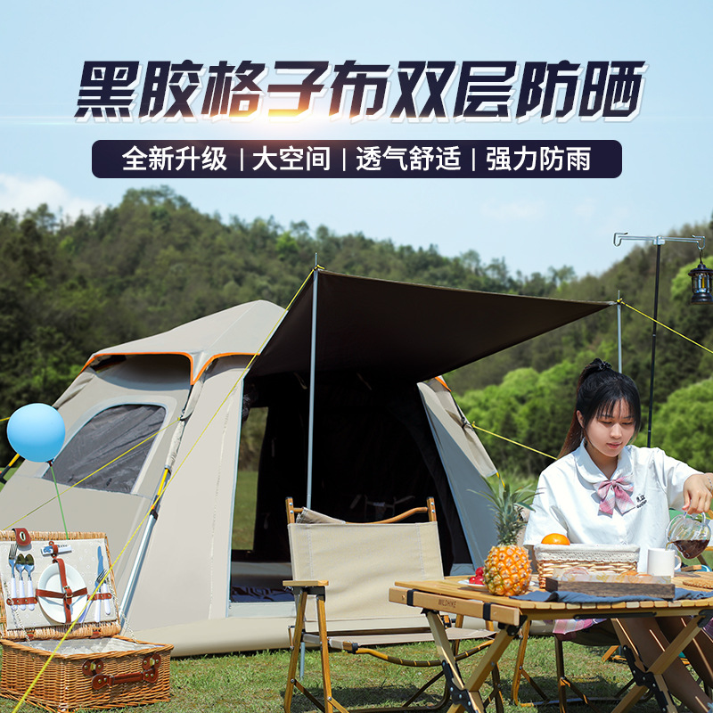 Оригинальная палатка Wolf Открытый портативный складной кемпинг Кемпинг Автоматический переплет Черный клей Непромокаемый солнцезащитный крем Быстро открывающийся алюминиевый стержень