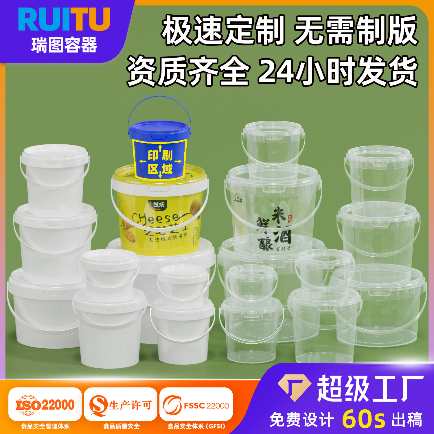透明桶 打包桶 透明塑料桶 水果桶 包装桶 海蜇桶