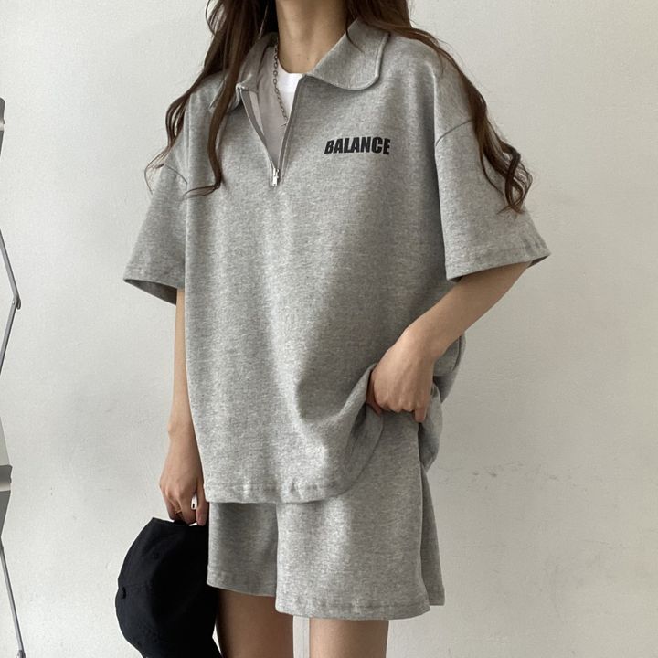 Костюм 4 цветов, женские повседневные шорты на молнии с короткими рукавами, однотонная Корейская хлопковая летняя спортивная одежда, модная свободная