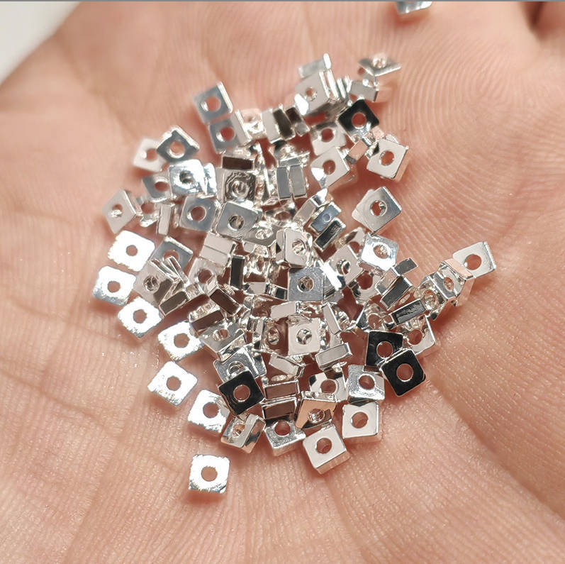 Серебро/квадрат около 1,5*1 мм, отверстие 0,9; Серебро/квадрат около 2*1 мм, отверстие 1; Серебро/квадрат около 2,5*1 мм, отверстие 1; Серебро/квадрат около 2*2*2 мм, отверстие 1,3; Квадратные бусины серебристого цвета/с фаской, около 1,5 мм, отверстие 0,5; Квадратные бусины серебристого цвета со скошенной кромкой и отверстием около 2 мм.; Цвет латуни/ок. Отверстие 3*1,2 мм 1,2; Цвет латуни/ок. Отверстие 4*1,5 мм 1,5; Цвет латуни/ок. Отверстие 4*2 мм 1,5; Цвет латуни/ок. Отверстие 5*1,4 мм 2; Серебро/квадрат около 3*1,2 мм, отверстие 1,2; Серебро/квадрат около 4*1,5 мм, отверстие 1,5; Серебро/треугольник около 3*1,6 мм, отверстие 1,2; Серебро/треугольник около 4*2 мм, отверстие 1,5; Серебро/треугольник около 5*1,4 мм, отверстие 2; 18-каратное золото/треугольник, отверстие около 4 мм, 1,5; 18-каратное золото/квадратное отверстие около 3 мм 1,2; Серебро/квадрат около 1,5*0,8 мм, отверстие 0,9