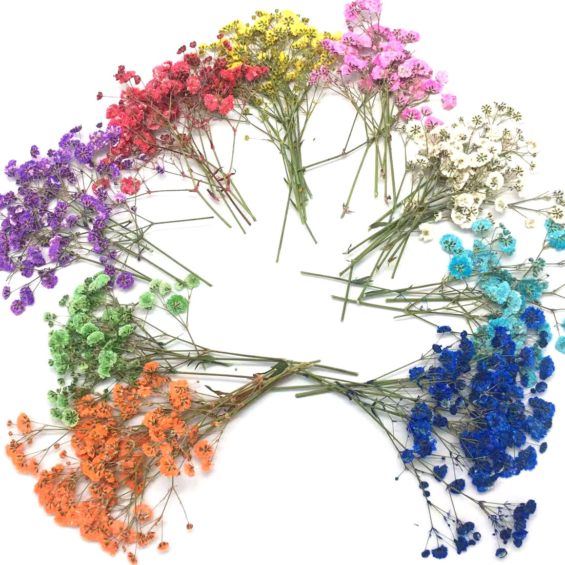 特点:自然生长植物手工制作而成,每一枝花头多少/大小,形态,颜色都各有差异,原色为白色,其他颜色是吸色的,吸色后颜色不均,带有白点属正常现象,满天星花头容易掉落,无法保证完整无缺,介意慎拍!