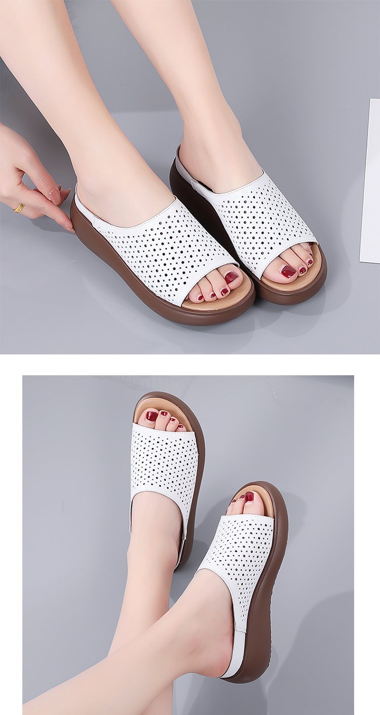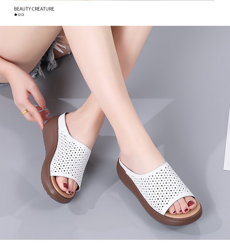 Полые тапочки на толстой подошве, летняя модная женская обувь на танкетке с открытым носком и открытым носком, женская обувь на платформе и каблуке, обувь больших размеров для внешней торговли